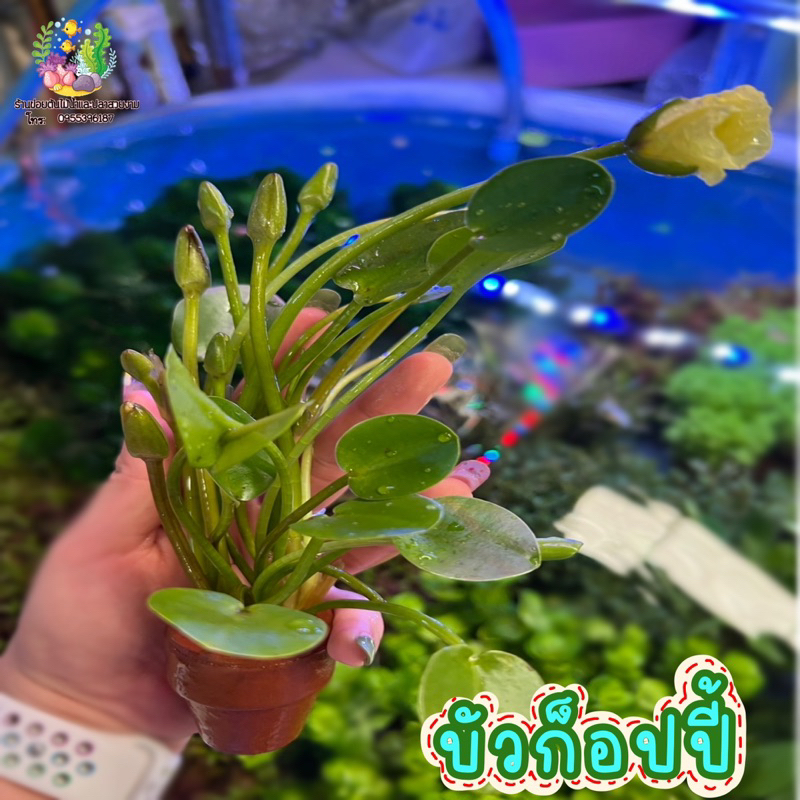 บัวก็อป บัวก็อปปี้ = เป็นบัวที่มีขนาดเล็ก นิยมใส่ในอ่างปลาตู้ปลา และมีดอกสีเหลืองสดใส เล็กกำลังน่ารัก 🌱💦