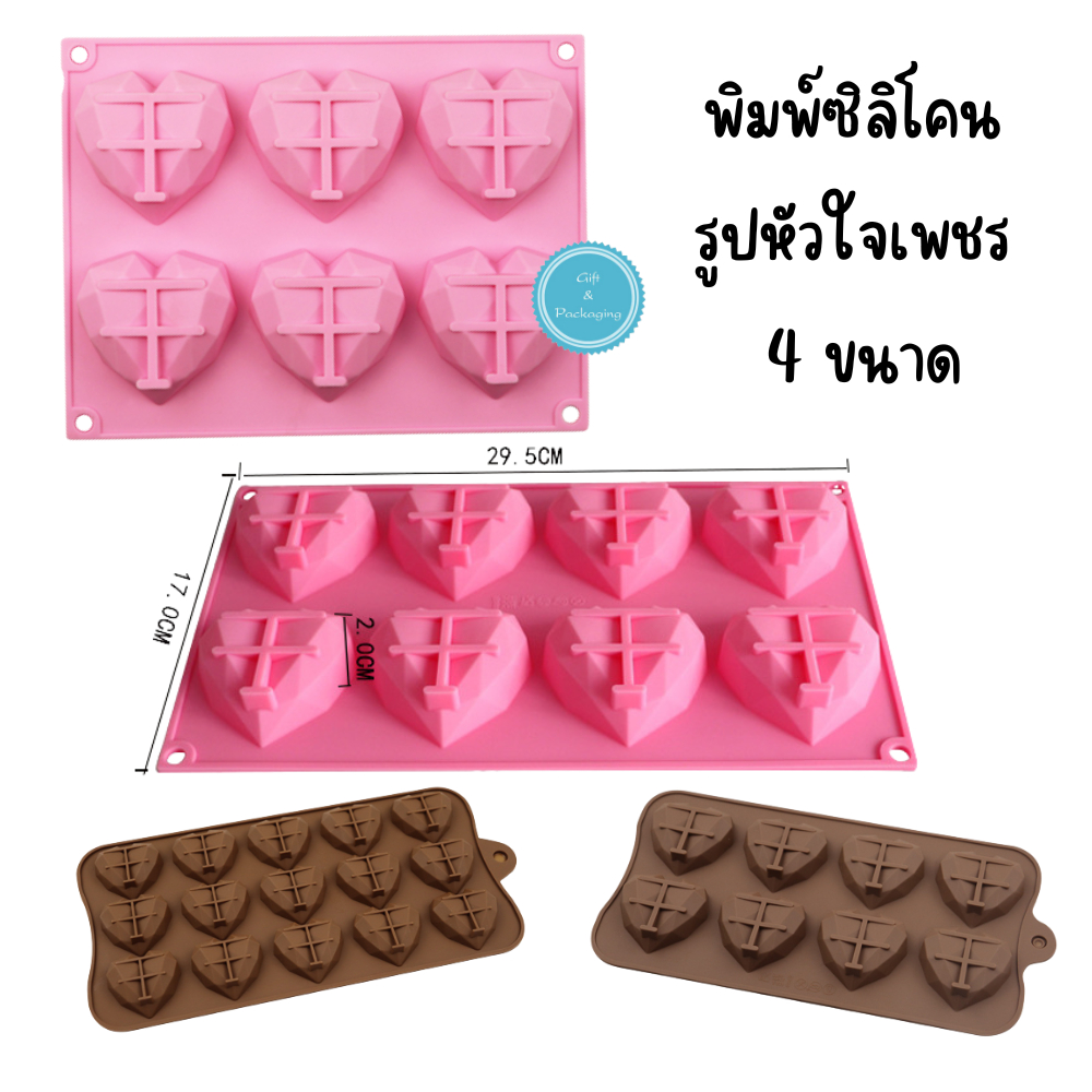 พิมพ์ซิลิโคน รูปหัวใจ ขนาด 6 หลุม 8 หลุม 15 หลุม พิมพ์ซิลิโคนทนร้อน ทนเย็น พิมพ์ซิลิโคนทำช็อคโกแลต พิมพ์ซิลิโคนอบขนม