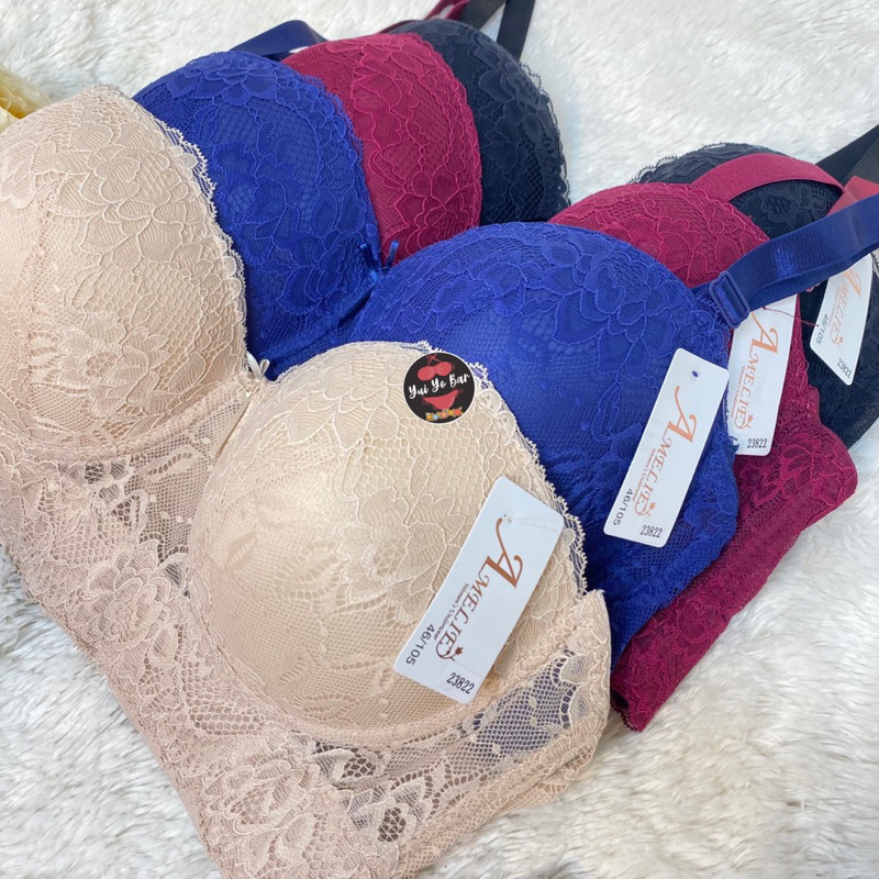 23822^บรา6 ตะขอแต่งลูกไม้ครึ่งเต้า(Sizr38-50)เก็บเนื้อปลิ้นด้านข้างได้ดีC-D