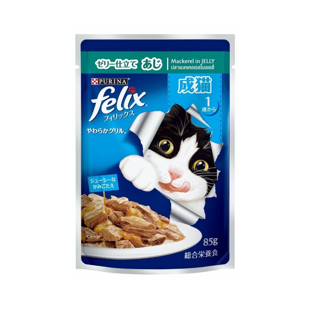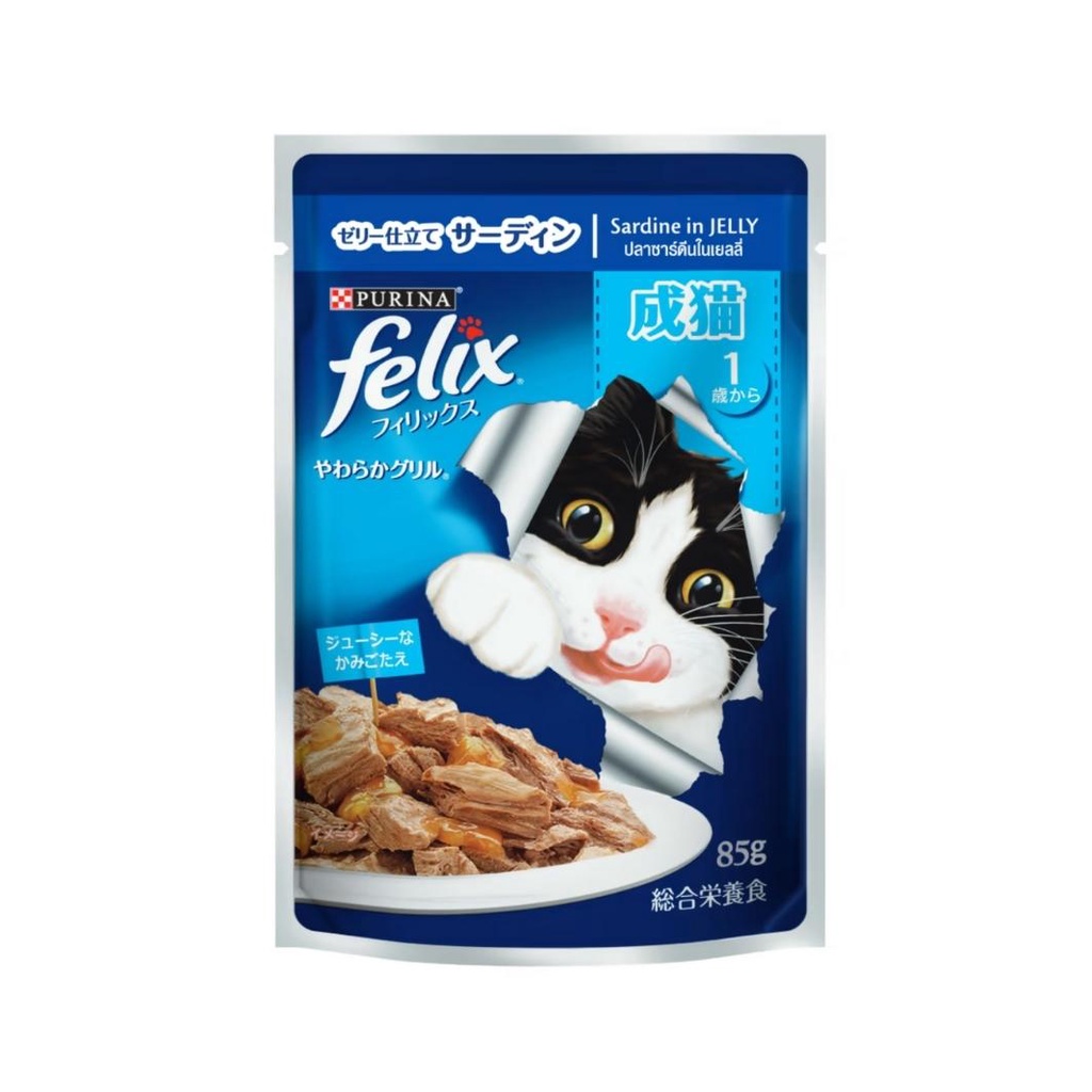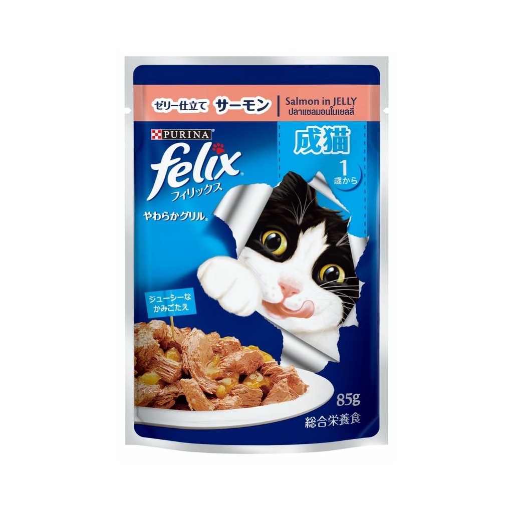 FELIX เฟลิกซ์ อาหารเปียกแมว [ยกโหล 12 ซอง] ขนาด 85 กรัม สูตรลูกแมว - ปลาทูน่าในเยลลี่ - ไก่ในเยลลี่ สูตรแมวโต - ปลาทูในเยลลี่ - ปลาทูน่าในเยลลี่ - ไก่ในเยลลี่ - ปลาแซลมอนในเยลลี่ - ปลาซาร์ดีนในเยลลี่ - แซลมอนมะเขือเทศในเยลลี่ - ทูน่าผักโขมในเยลลี่ - ไก่ผักโขมในเยลลี่