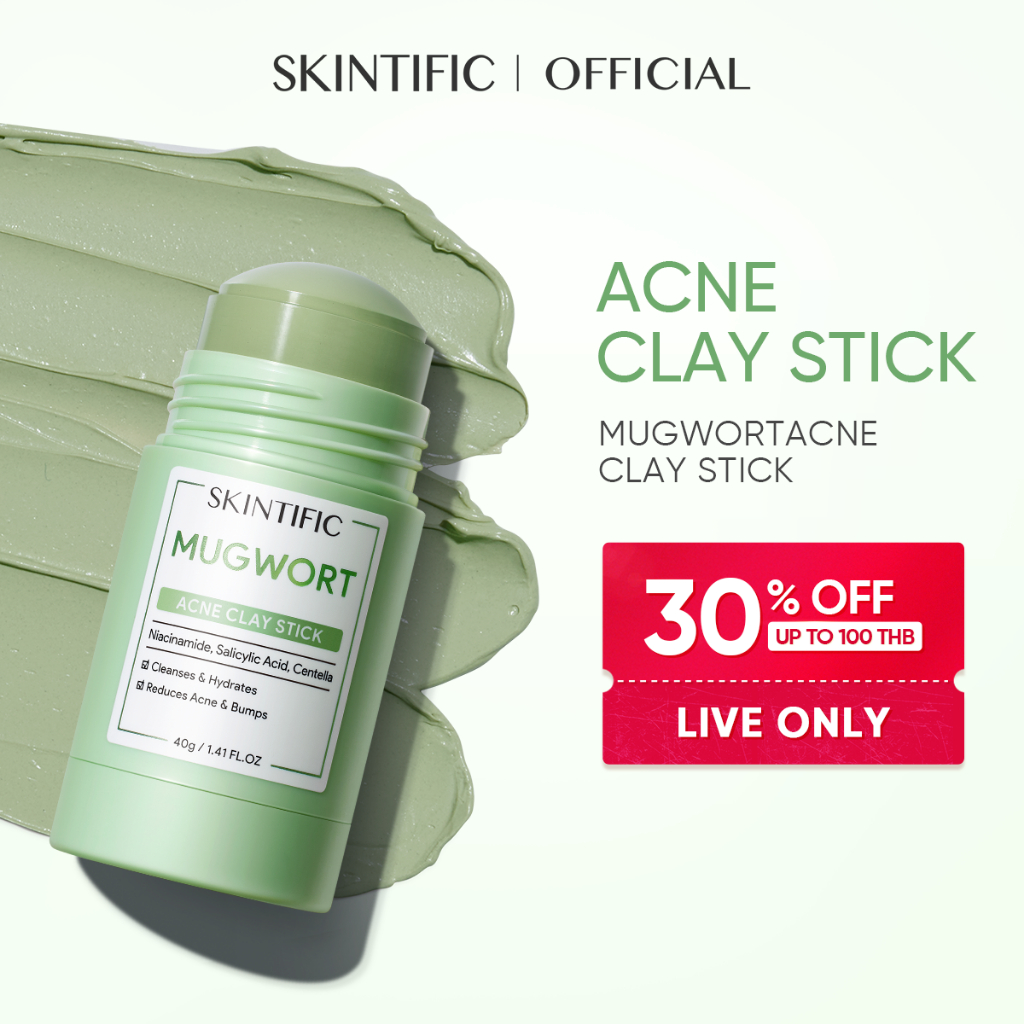 SKINTIFIC GLOBAL OFFICIAL STORE 1. แท้ชัวร์ 100% 2. สินค้าคุณภาพสูง 3. ส่งเร็ว ส่งไวแน่นอน 1-2 DAYS 4. ส่งฟรีทั่วไทย SKINTIFIC MUGWORT ANCE CLAY MASK STICK SKINTIFIC Mugwort มาส์กโคลนแบบแท่งที่ช่วยต้นสิว ปริมาณสุทธิ:40g ✨FDA:10-2-6600028794 🔻ส่วนผสมของผลิตภัณฑ์ มาสก์โคลนแบบแท่ง ที่มีส