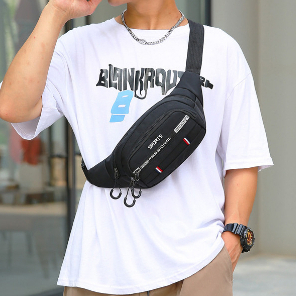 (B132#)กระเป๋าคาดอกคาดเอวแต่งซิปสวยงาม ผ้ากันน้ำ มีซับระบายอากาศ