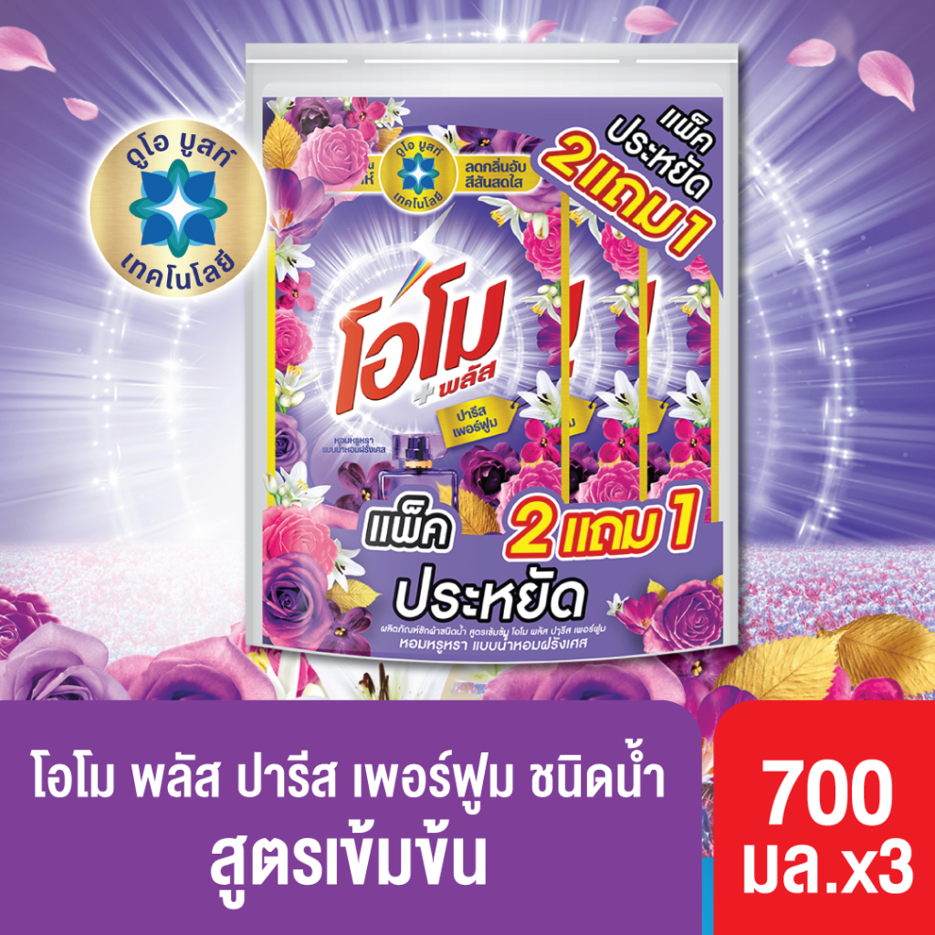 ... าวนาน 4 สัปดาห์* โอโม พลัส ซากุระ โรแมนซ์ ผลิตภัณฑ์ซักผ้าชนิดน้ำ สูตรเข้มข้นที่มาพร้อมกับ ดูโอ บูสท์ เทคโนโลยี ผสาน 2 แอคชั่น ในการทำความสะอาด ขจัดสิ่งสกปรกอย่างมีประสิทธิภาพ พร้อมลดกลิ่นอับ และเติมความหอมแทรกซึมถึงใยผ้า ให้ความหอมละมุนดั่งดอกซากุระบานสะพรั่ง สะอาด สดใส ลดกลิ่นอับ หอมหรูหรามีระดับติดทนยาวนาน 4 สัปดาห์* โอโม พลัส ปารีส เพอร์ฟูม ผลิตภัณฑ์ซักผ้าชนิดน้ำ สูตรเข้มข้นที่มาพร้อมกับ ดูโอ บูสท์ เทคโนโลยี ผสาน 2 แอคชั่น ในการทำความสะอาด ขจัดสิ่งสกปรกอย่างมีประสิทธิภาพ พร้อมลดกลิ่นอับ และเติมความหอมแทรกซึมถึงใยผ้า ให้ความหอมหรูหรา ดุจน้ำหอมชั้นนำจากประเทศฝรั่งเศส สะอาด สดใส ลดกลิ่นอับ หอมหรูหรามีระดับติดทนยาวนาน 4 สัปดาห์* โอโม พลัส มอร์นิ่ง พาราไดซ์ ผลิตภัณฑ์ซักผ้าชนิดน้ำ สูตรเข้มข้นที่มาพร้อมกับ ดูโอ บูสท์ เทคโนโลยี ผสาน 2 แอคชั่น ในการทำความสะอาด ขจัดสิ่งสกปรกอย่างมีประสิทธิภาพ พร้อมลดกลิ่นอับ และเติมความหอมแทรกซึมถึงใยผ้า ให้ความหอมสดชื่นเหมือนดอกไม้ท่ามกลางแสงแดดยามเช้า สะอาด สดใส ลดกลิ่นอับ หอมหรูหรามีระดับติดทนยาวนาน 4 สัปดาห์* โอโม พลัส มิดไนท์ มิราเคิล ผลิตภัณฑ์ซักผ้าชนิดน้ำ สูตรเข้มข้นที่มาพร้อมกับ ดูโอ บูสท์ เทคโนโลยี ผสาน 2 แอคชั่น ในการทำความสะอาด ขจัดสิ่งสกปรกอย่างมีประสิทธิภาพ พร้อมลดกลิ่นอับ และเติมความหอมแทรกซึมถึงใยผ้า ให้ความหอมหรูหรา แม้ซักกลางคืน^ สะอาด สดใส ลดกลิ่นอับ หอมหรูหรามีระดับติดทนยาวนาน 4 สัปดาห์* *จากผลทดสอบในห้องปฏิบัติการโดยผู้เชี่ยวชาญด้านน้ำหอม เมื่อเก็บผ้าไว้ในตู้ 4 สัปดาห์ เมื่อ พ.ศ. 2566 ^จากผลการทดสอบในห้องปฏิบัติการ การลดกลิ่นอับบนผ้า ในปี 2566 วิธีใช้ 1. ป้ายผลิตภัณฑ์เล็กน้อยลงบนจุดที่ต้องการทำความสะอาดเป็นพิเศษก่อนซัก 2. ในกรณีซักเครื่อง ควรเทผลิตภัณฑ์ลงในช่องสำหรับใส่ผงซักฟอกโดยเฉพาะ ในกรณีซักมือ ควรละลายผลิตภัณฑ์ในน้ำให้ทั่วก่อนนำผ้าลงแช่หรือซัก แล้วล้างออกด้วยน้ำสะอาด 1 ครั้ง = 35 มล. ต่อปริมาณผ้า 15 – 20 ชิ้น โอโม พลัส ไวท์ ชนิดน้ำ ผลิตภัณฑ์ทำความสะอาดผ้าที่ออกแบบมาเพื่อผ้าขาวโดยเฉพาะ ช่วยลดคราบเหลืองสะสม มาพร้อมกับ ดูโอ บูสท์ เทคโนโลยี ผสาน 2 แอคชั่น ในการทำความสะอาด ขจัดสิ่งสกปรกอย่างมีประสิทธิภาพ พร้อมเติมความหอมแทรกซึมถึงใยผ้า ให้ความหอมติดทนยาวนาน 4 สัปดาห์^ ขาวสะอาดสดใส ลดกลิ่นอับ สวมใส่เสื้อผ้าได้อย่างมั่นใจ ตอกย้ำที่สุดของความขาวจากโอโม ด้วย อัลตร้า ไวท์ x5* ช่วยให้ผ้าขาวสะอาดสีสันสดใส วิธีใช้ 1. ป้ายผลิตภัณฑ์เล็กน้อยลงบนจุดที่ต้องการทำความ
