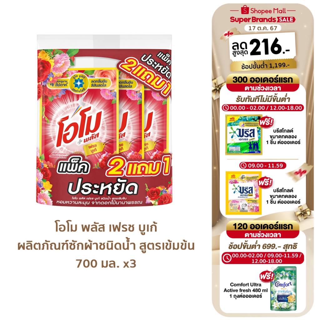 โอโม พลัส น้ำยาซักผ้า (2+1) 700 มล. Omo Plus Liquid Detergent (2+1) 700 ml.