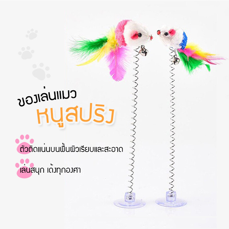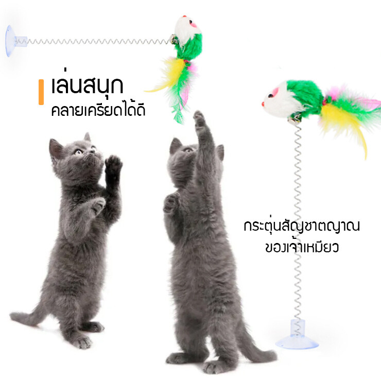 ของเล่นแมวหนูสปริง สปริงตัวดูดรูปหนู ไม้ล่อแมวแบบตั้งพื้น หนู ไม้แมวตั้งพื้นสปริง มีตัวดูด ขนาดเล็กพกพาสะดวก เอาไว้ล่อแ