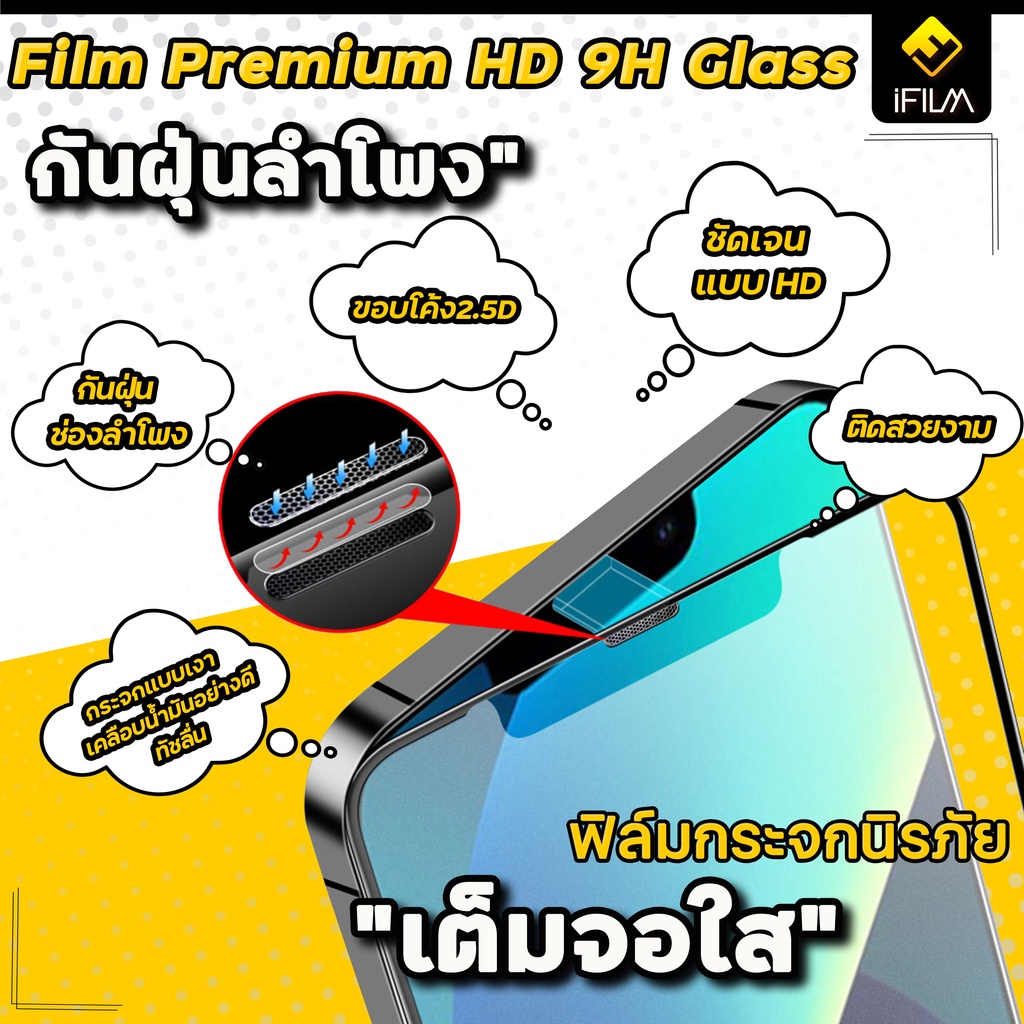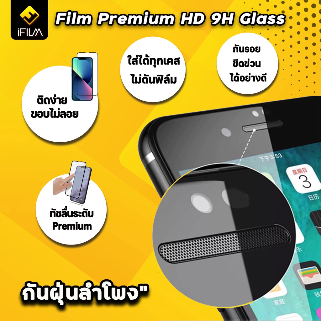 🔥 iFilm ฟิล์มกระจก เต็มจอใส กันฝุ่นลำโพง For iphone 16 pro max 16plus 15promax 15 plus 14 13 mini iphone11 ฟิล์ม ไอโฟน