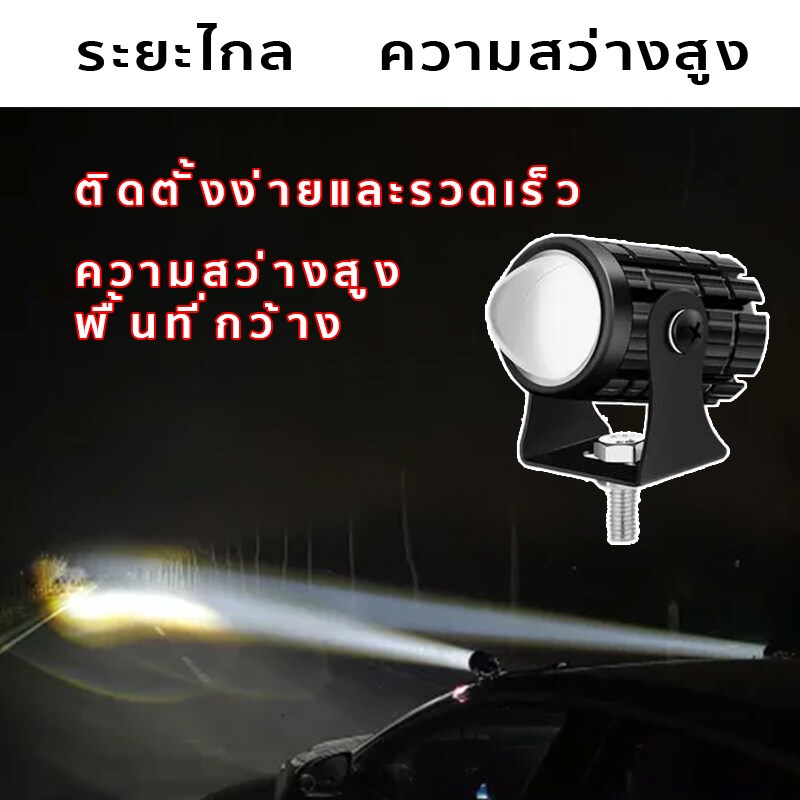 แพ็ค 2ชิ้น ไฟโปรเจคเตอร์ ไฟหน้ารถยนต์LED ไฟท้าย ไฟสปอร์ตไลท์มอเตอร์ไซค์ สว่างมาก 2 สเต็ป (เเสงสีขาว+แสงสีส้ม) 88W LED