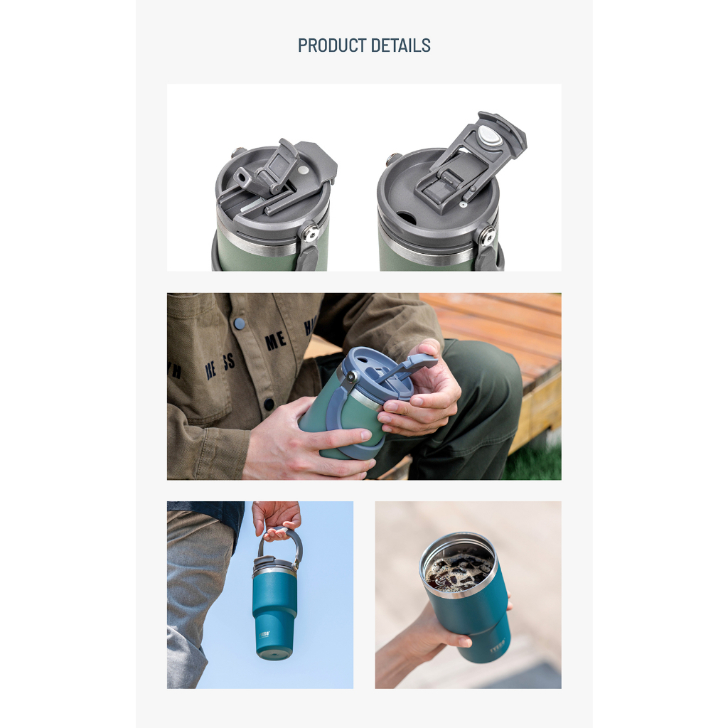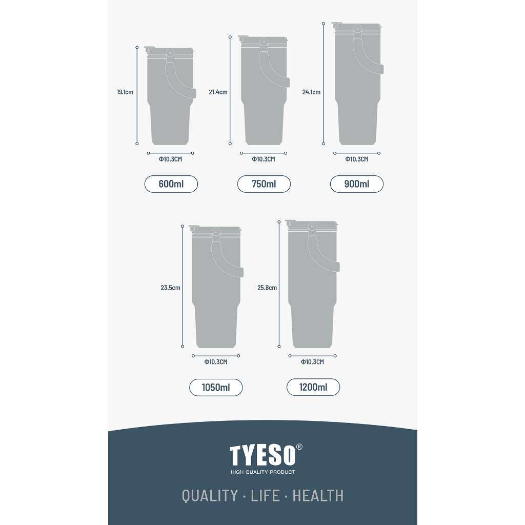 TYESO ของแท้ แก้วเก็บความเย็น สแตนเลส 304 มีหูหิ้ว มีหลอดดูด (รุ่น 2 หัว) มีหลอดดูด หูหิ้ว มีใบรับรองตัวแทนจำหน่าย