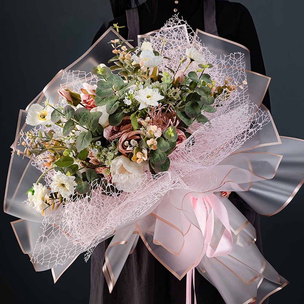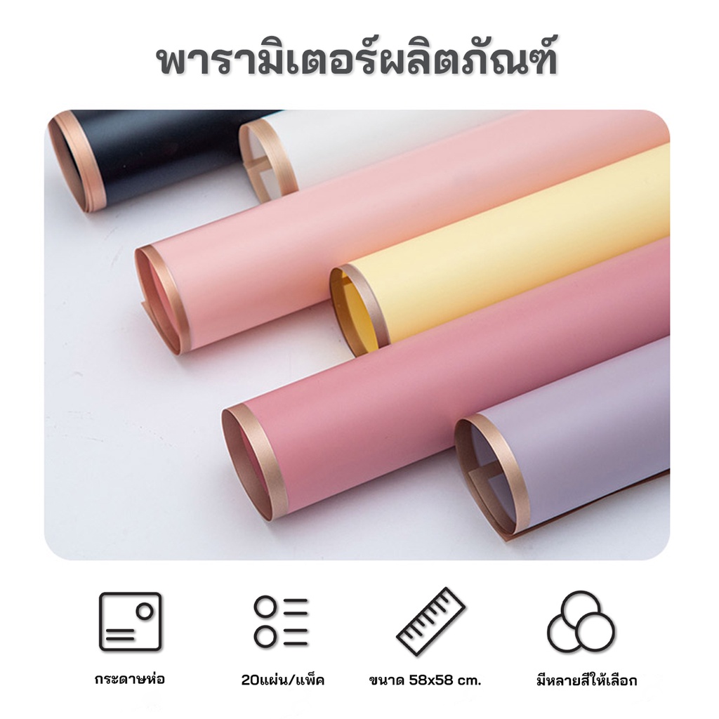 กระดาษห่อช่อดอกไม้ 20 แผ่น สไตล์เกาหลี (พร้อมส่ง) วัสดุกันน้ำ ใช้ได้กับดอกไม้สดและดอกไม้ประดิษฐ์ ขนาด 58x58 ซม.
