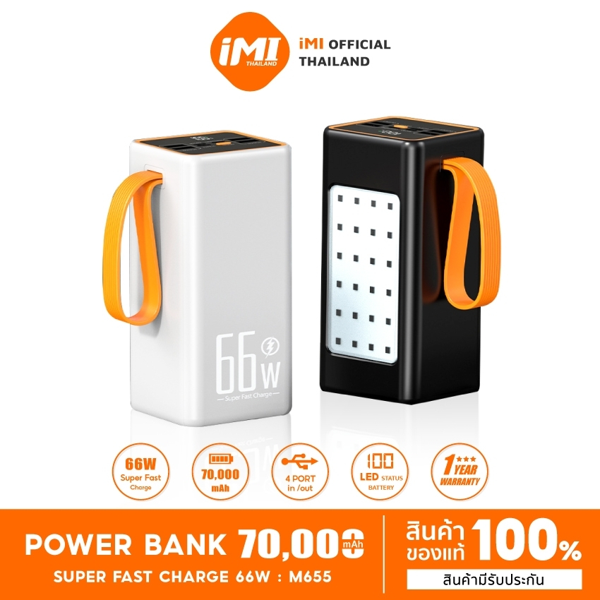iMI powerbank 70000mAh fast charge 66W PD20W พาวเวอร์แบงค์ชาร์จเร็ว ชาร์จได้ 5เครื่อง ประกัน1ปี