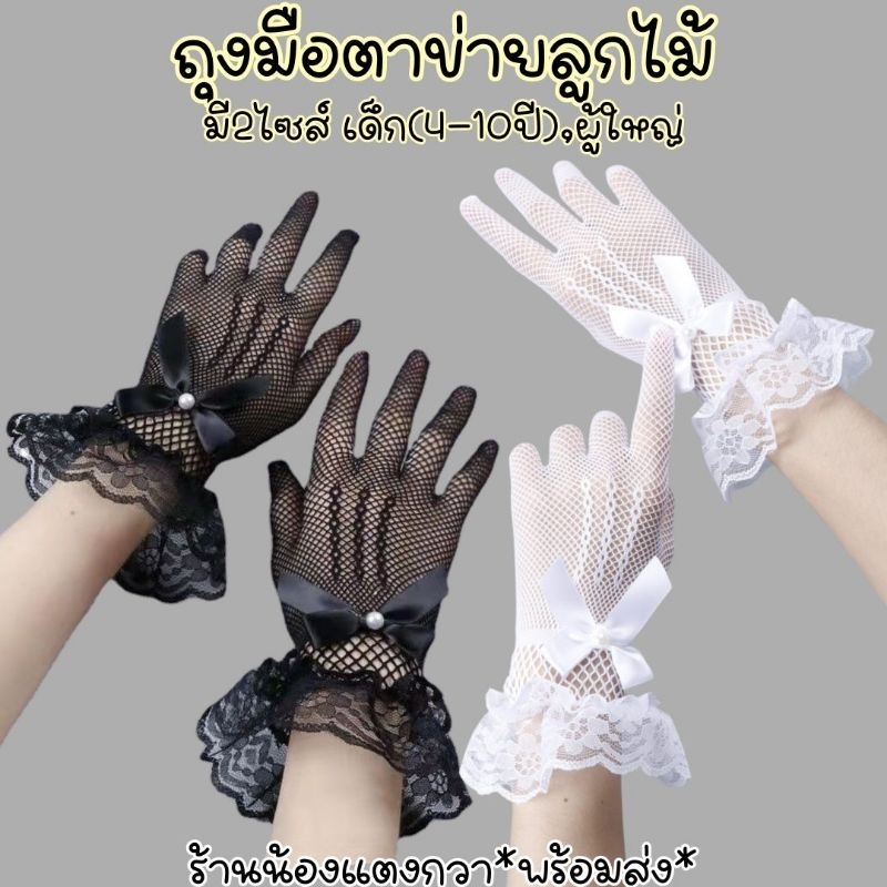 ถุงมือตาข่ายลูกไม้ ยืดๆ มีขนาดเด็ก-ผู้ใหญ่พร้อมส่ง!