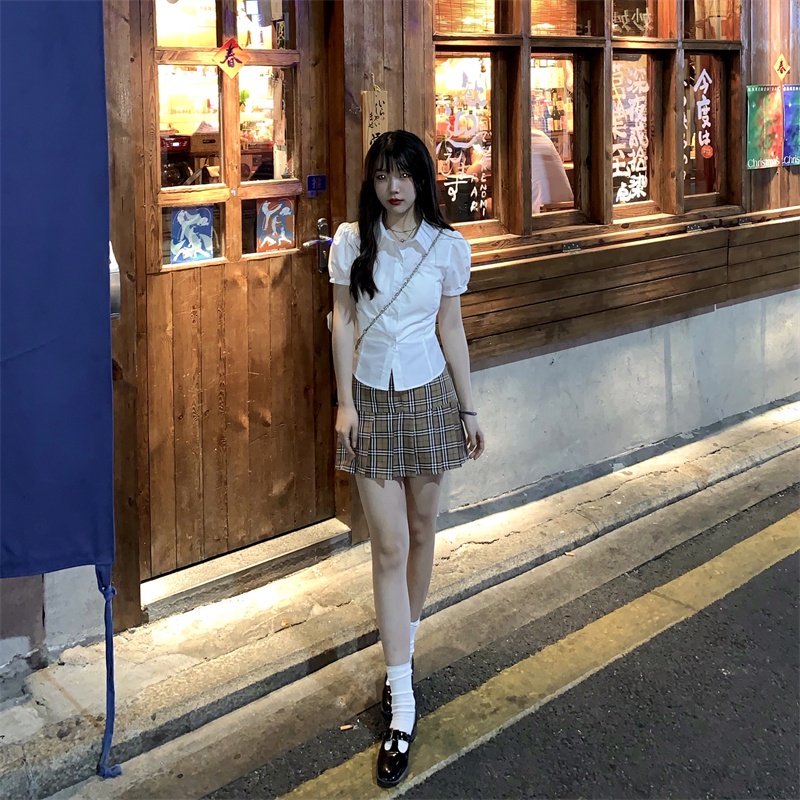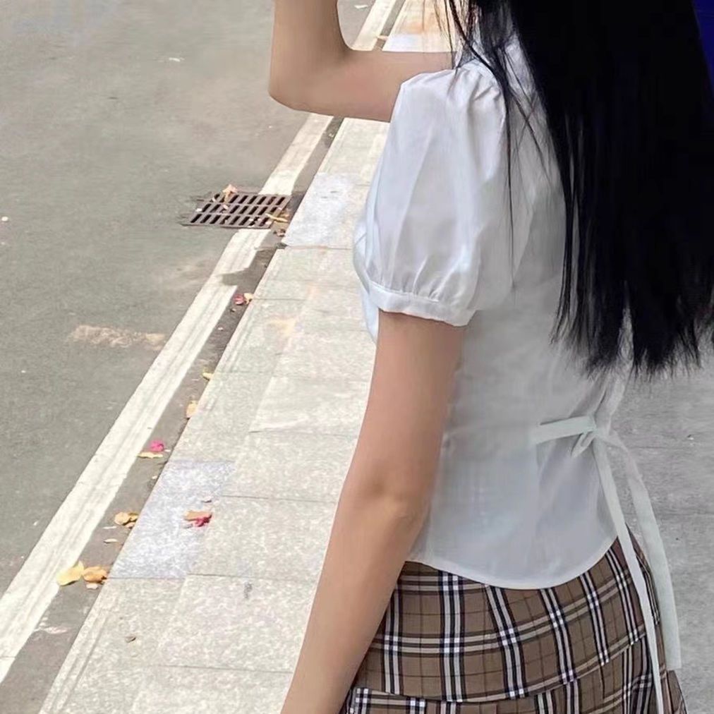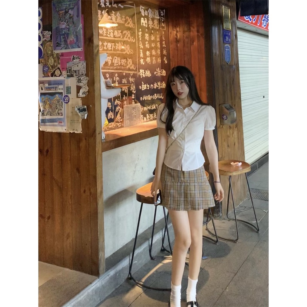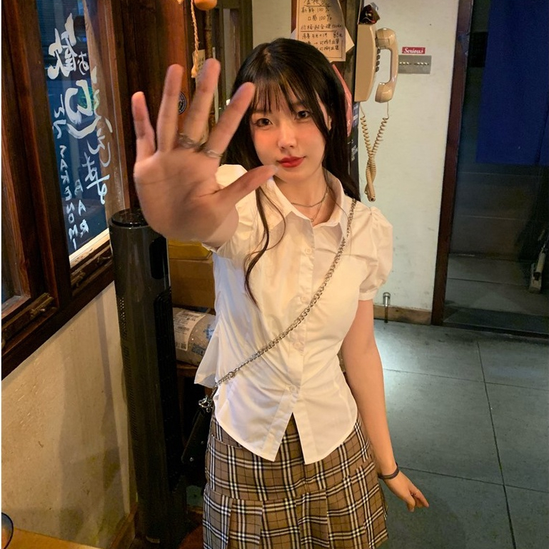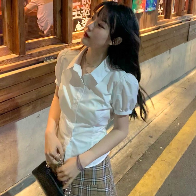 เสื้อเชิ้ตแขนสั้น แขนพอง สีขาว แฟชั่นฤดูร้อน สําหรับผู้หญิง
