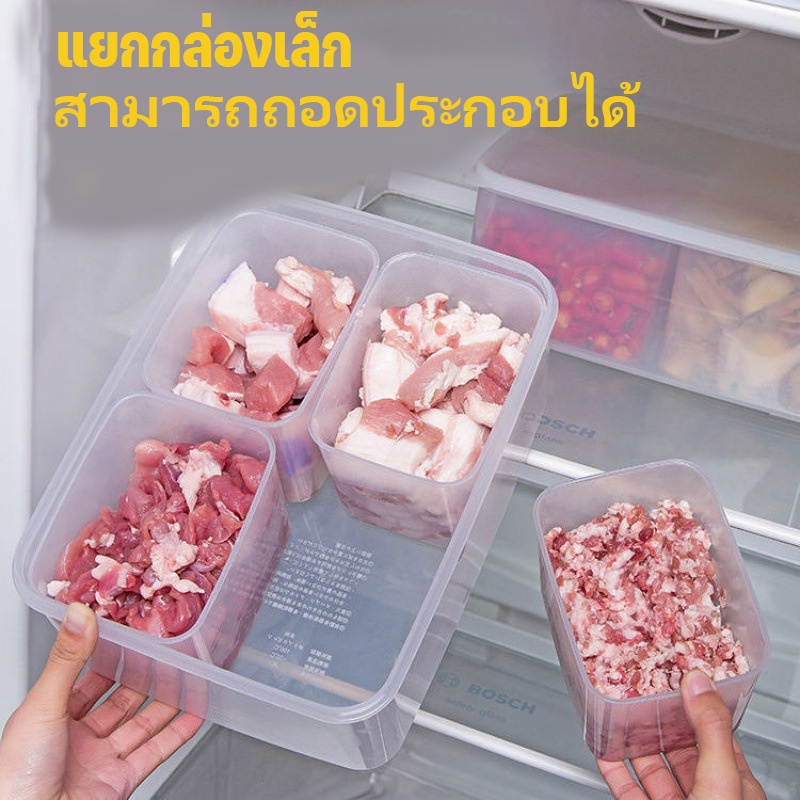 COD พร้อมส่ง กล่องเก็บของในตู้เย็น 4ช่อง พร้อมฝาปิด ปิดผนึก รักษาความสด
