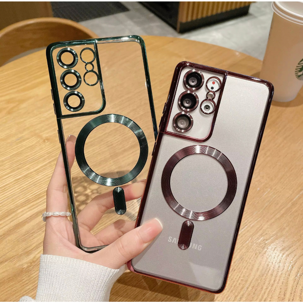 เคสกันกล้อง พร้อมเลนส์กล้อง เคสแม่เหล็ก ใส ชาร์จได้ Samsung S24FE S24ultra S24 S23 S20FE S22 note20 Ultra S23FE S23ultra