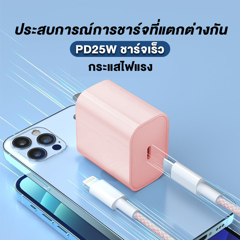 ชุดชาร์จเร็ว PD สายชาร์จ + หัวชาร์จ 25W fast charging (สำหรับ ไอ5~14pro max / ไอpad) การรับประกัน 1 ปี