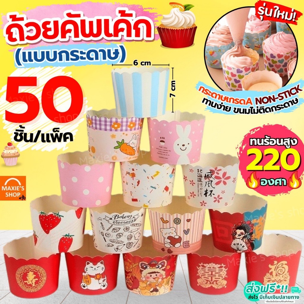 🔥ส่งฟรี🔥 ถ้วยคัพเค้กกระดาษ MAXIE 50ชิ้น/ชุด ถ้วยคัพเค้ก ถ้วยปาเนตโทน