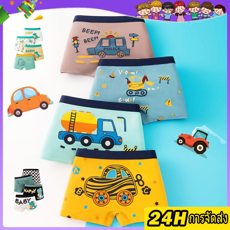 กางเกงในเด็กผู้ชาย 4 ตัว กางเกงบ๊อกเซอร์เด็กชาย ผ้าฝ้ายแท้ เนื้อผ้านิ่มสวมใส่สบาย