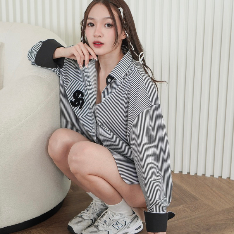 New ally fufu oversized shirt อ๊ายชั้นร้องกรี้ดเลย ให้กับความน่ารัก สวย เท่ ชิค ครบจบในตัวเดียว รุ่นนี้ดีเทลเก๋มากๆๆงานปัง DM แตกพูดเลย ⚡️เสื้อเชิ้ตลายทาง ปลายแขนด้านในแต่งสีทึบ พับขึ้นแบบเกร๋ๆ ฐานปกสีทึบเดียวกับปลายแขน จึ้งมาก กระเป๋าปักโลโก้ขนฟูฟู แบบน่ารักสุดๆอะแก รุ่นนี้มีด้วย