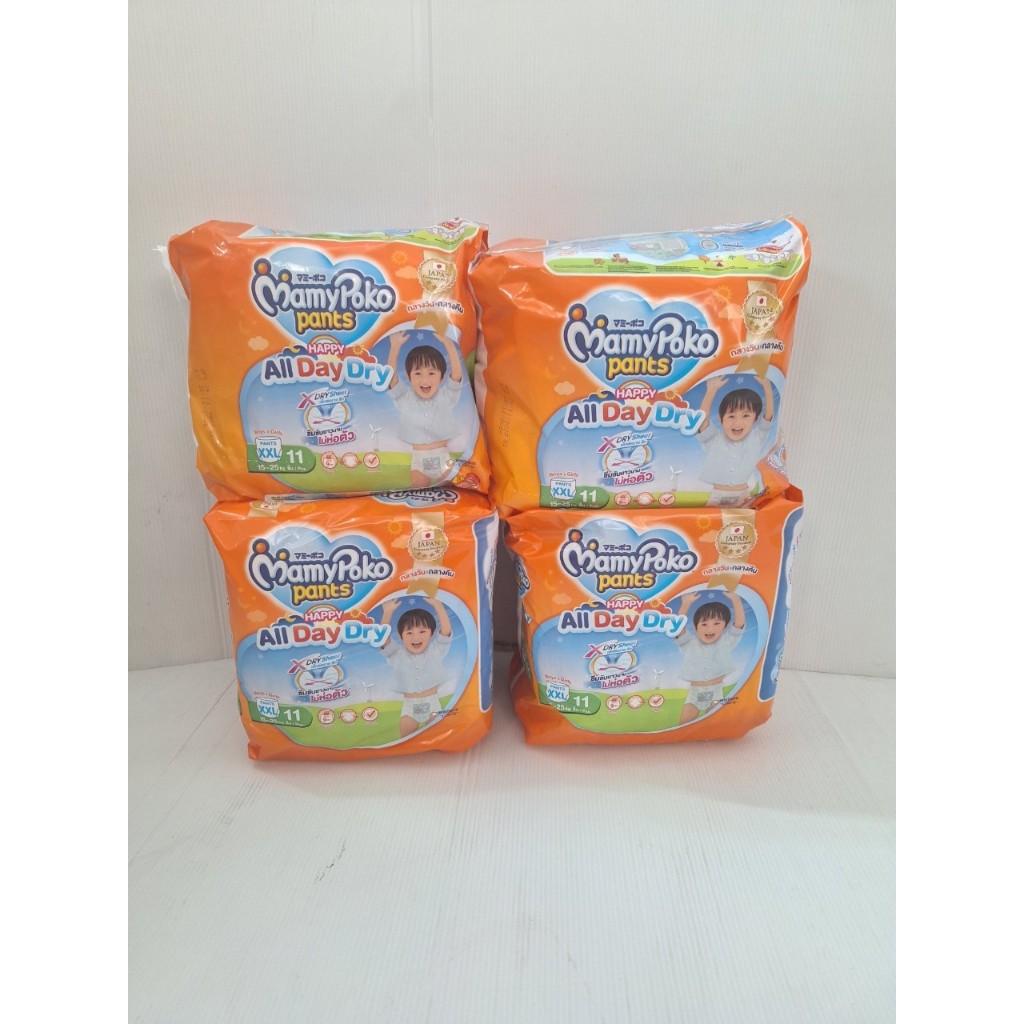 มามี่โพโค ออลเดย์ดราย1ชุด=4ห่อ แพมเพิสเด็กแบบกางเกง Mamypoko All Day Dry size S 19×4 = 76ชิ้น size M 17×4 = 68ชิ้น size L 14×4 = 56ชิ้น size XL 13×4 =52ชิ้น size XXL 11×4 =44ชิ้น size XXXL 7x4 =28ชิ้น