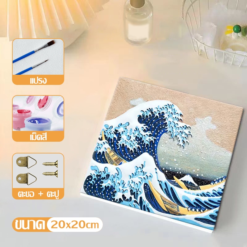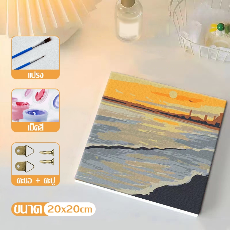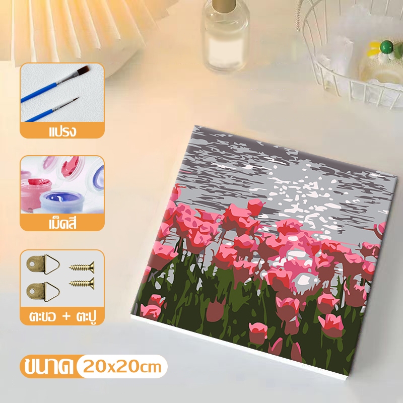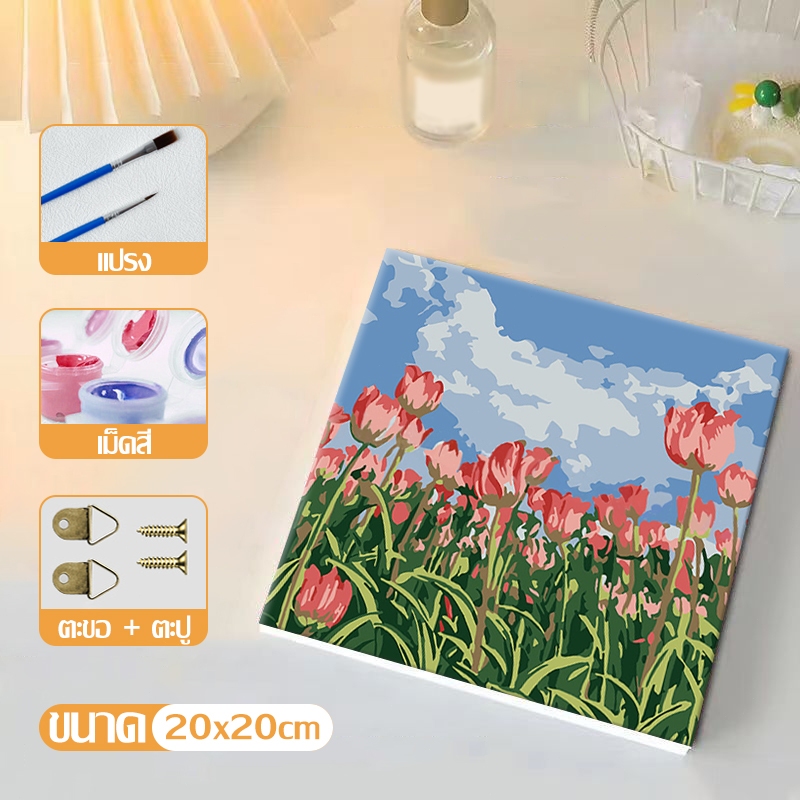 [มีเฟรม] 20X20ซม ระบายสีตามตัวเลข จิตรกรรมภูมิทัศน์ดอกไม้ ขึงเฟรมไม้พร้อมอุปกรณ์ ขนาด ฝึกสมาธิ ของขวัญ DIY