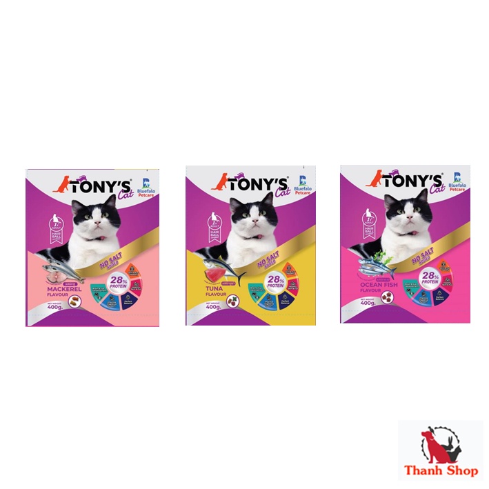 TONY'S Cat อาหารแมวเม็ด สำหรับแมวอายุ 1 ปีขึ้นไป 400 g. มี 3 รสให้เลือกสรร 1 ทูน่า 2 ปลาทู 3 ปลาทะเล TONY'S Cat เป็นผลิตภัณฑ์อาหารแมวที่เกิดจาก ความมุ่งมั่น ค้นคว้า พัฒนา และวิจัยสูตรอาหารให้มีคุณค่า ทางโภชนาการครบถ้วน ร่วมกับการคัดสรรวัตถุดิบที่มีคุณภาพ เพื่อดูแลให้แมวมีสุขภาพที่แข็งแรง สมว