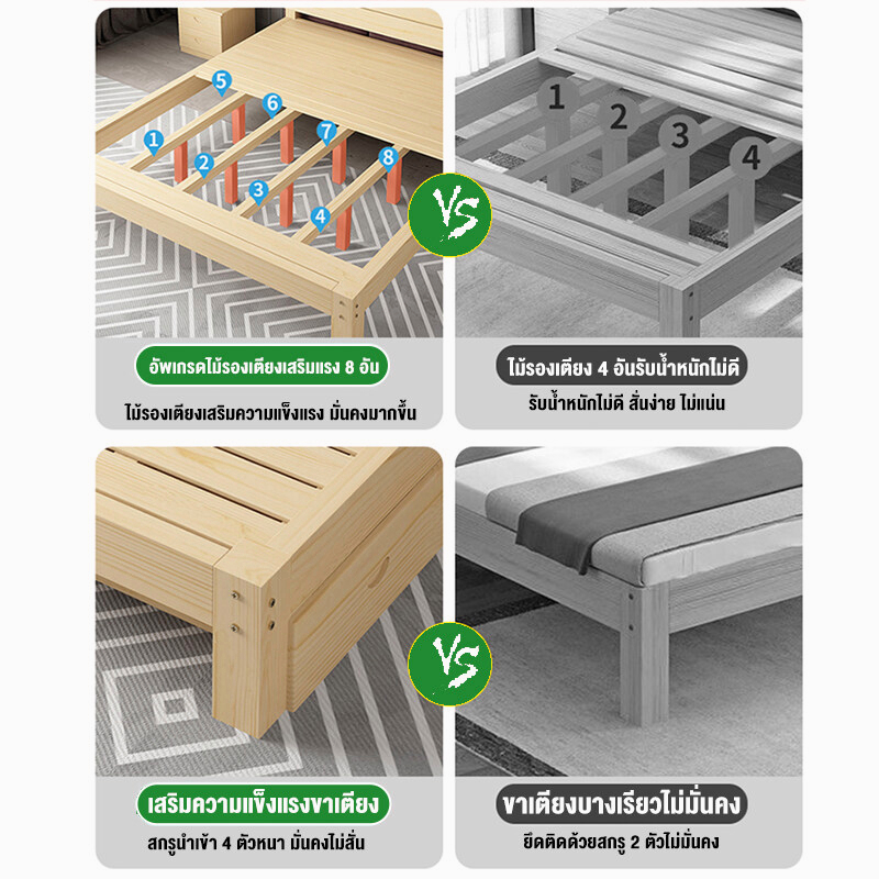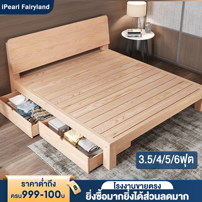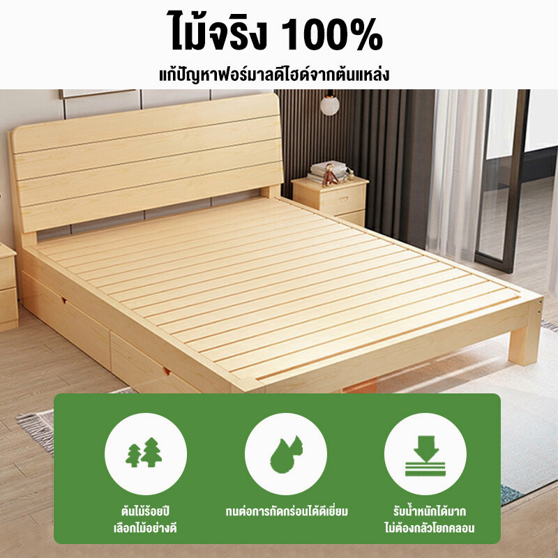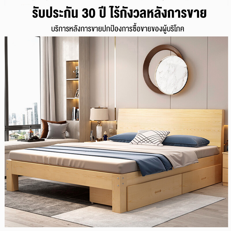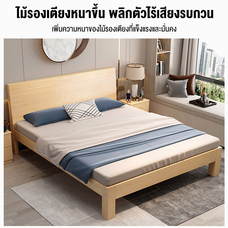 เตียงนอน 6/5/4 ฟุต เตียงไม้เนื้อแข็ง ทันสมัยเรียบง่า ไม้จริง100% มีอายุการใช้งานอย่างน้อย10ปี