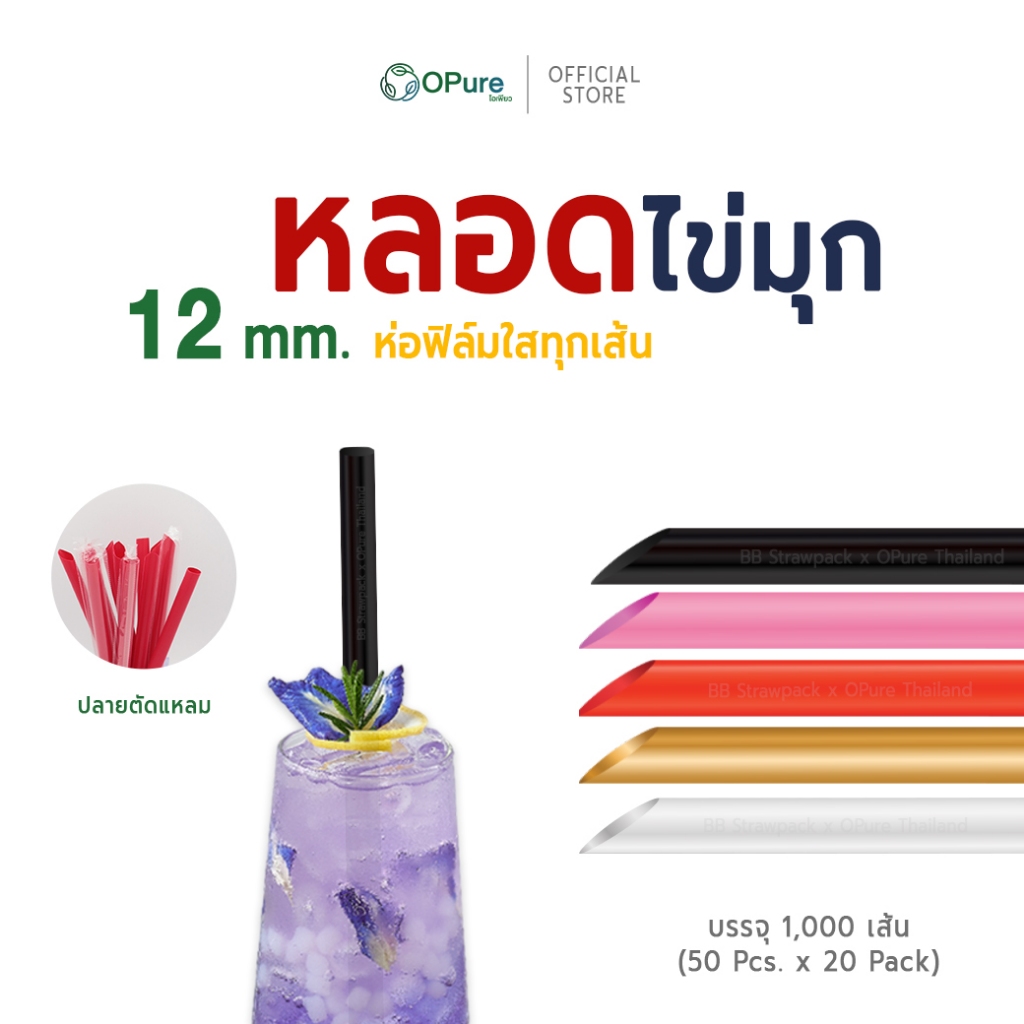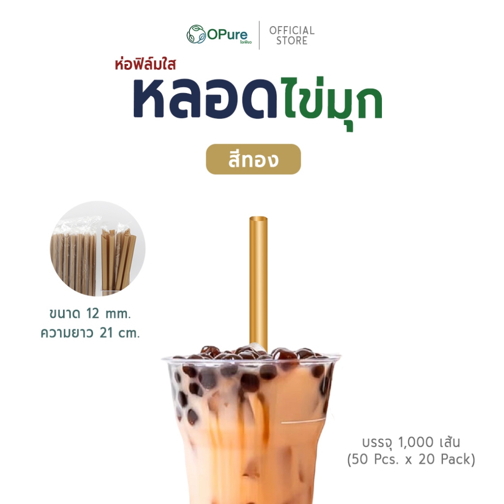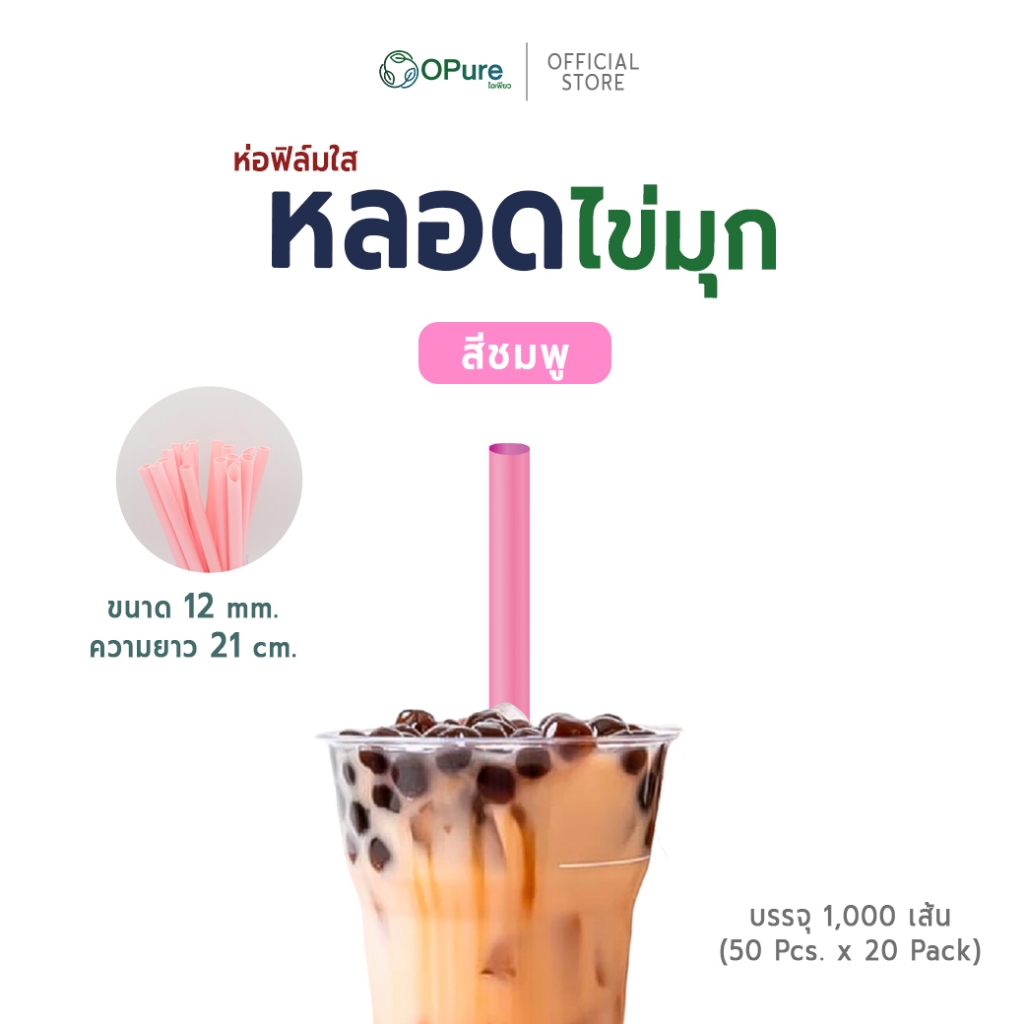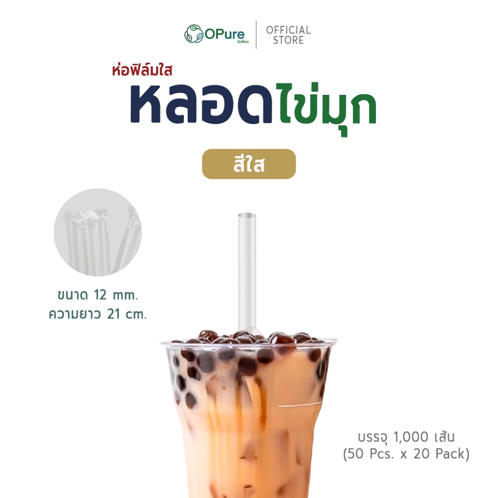 (1,000 เส้น) หลอดชาไข่มุก-จัมโบ้ 12 มิล ยาว 21 ซม. *ห่อฟิล์มใส หลอดพลาสติก OPure *ขายดี* (ขายยกลัง)