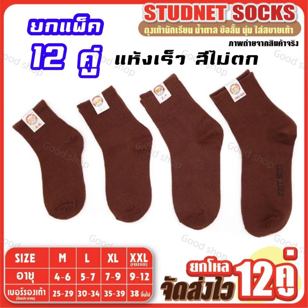 ถุงเท้านักเรียน🔥 (แพ็ค12คู่)🌀ถุงเท้าสีน้ำตาล🐘 มีครบ 4 Size เนื้อผ้าดี สวมใส่สบาย พร้อมส่งจากกทม🚚
