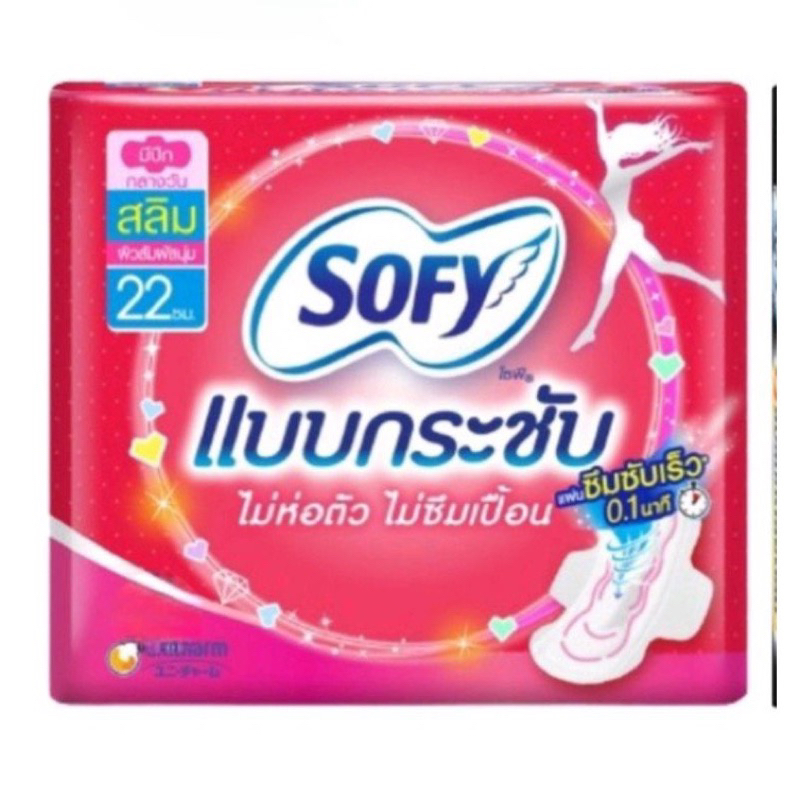 💌[โซฟีสลิม12 ห่อ ฟรี+ 1]Sofy โซฟี ผ้าอนามัย💌 กลางวันแบบกระชับ สลิมมีปีก 22 ซม. ยกแพค