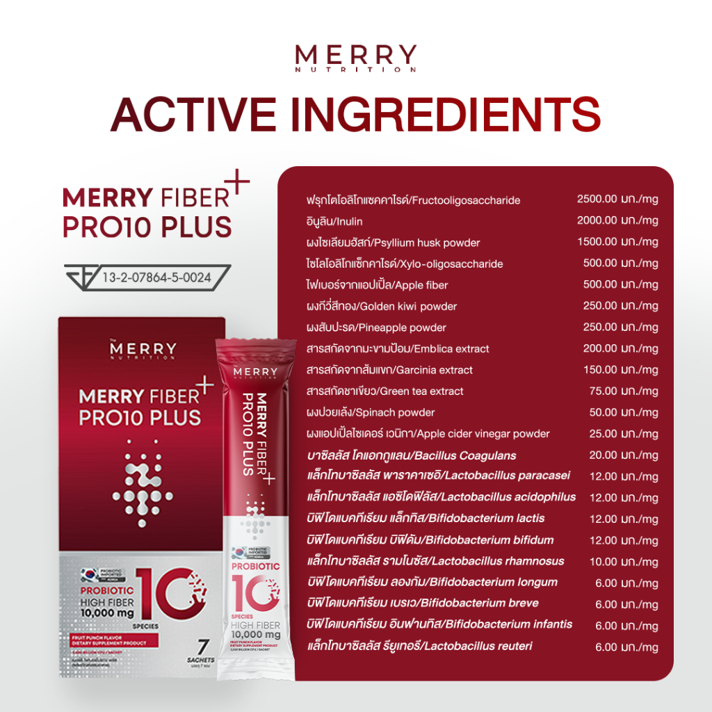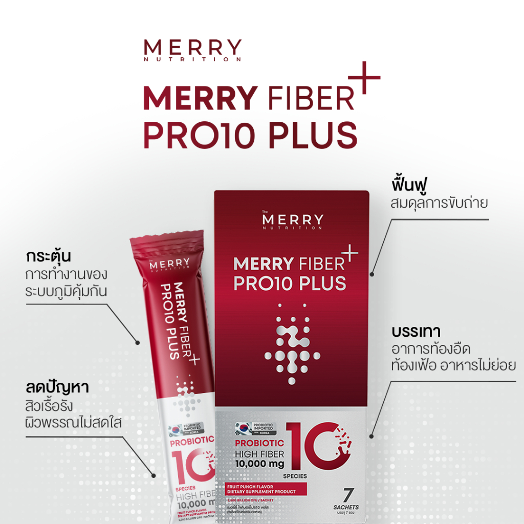 เมอร์รี่ ไฟเบอร์ โปร 10 (ผลิตภัณฑ์เสริมอาหาร) Merry Fiber+ MERRY FIBER PRO 10 ✨ FRUIT PUNCH FLAVOR รสผลไม้พันช์ ✨ เพราะสุขภาพดี อยู่ที่การขับถ่าย Merry Fiber+ ดื่มเเล้ว.... 🍎 ร่างกายสดชื่น ผิวพรรณสดใส 🍎 มีส่วนช่วยฟื้นฟู เเละปรับสมดุลลำใส้ 🍎 มีส่วนช่วยกระตุ้นระบบขับถ่าย 🍎 มีส่วนช่วยให้ขับ