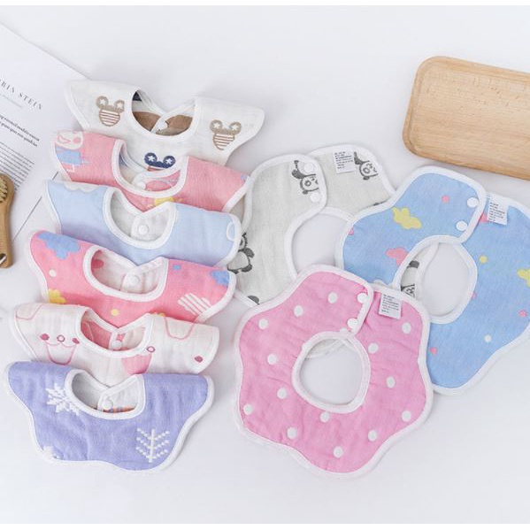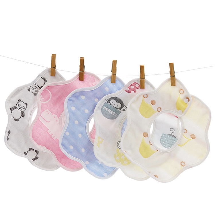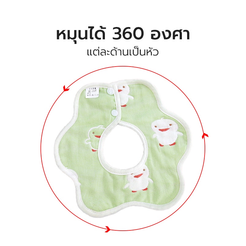 แบบรอบคอ 360 องศา เนื้อผ้าหนานุ่ม ใส่สบาย ไม่ระคายเคือง ซับน้ำได้ดี ผ้ากันเปื้อนเด็กอ่อน ผลิตจากผ้าฝ้าย หนา ช่วยให้น้ำหนักเบาและซึมซับดี ใช้ได้ 2 ด้าน ลายไม่เหมือนกัน ซึมซับอย่างอ่อนโยน เนื้อผ้านุ่มนวล ใช้ได้ทนนาน ผ่านการทดสอบไม่มีสารเรืองแสง และไม่ไวไฟ เหมาะสำหรับเด็กแรกเกิดจนถึง 1
