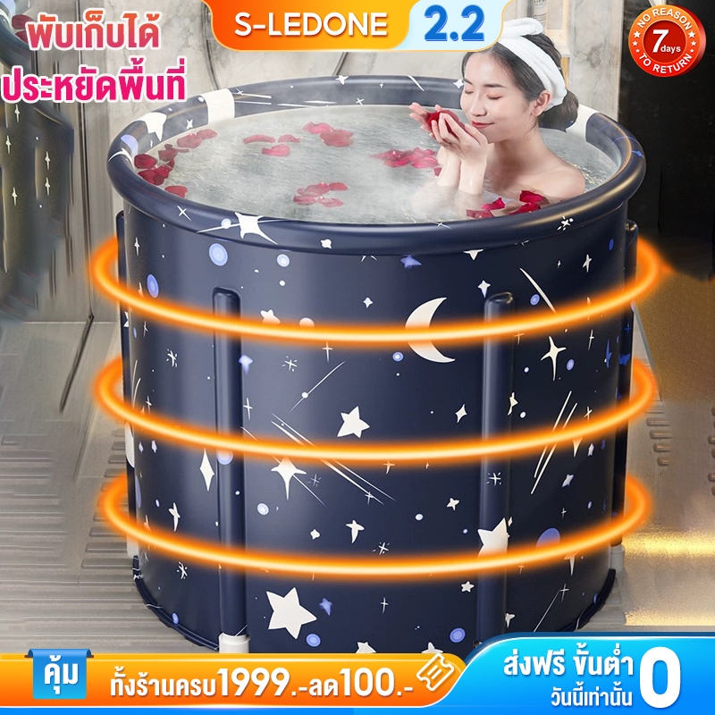 อ่างอาบน้ำ ลายดาวขนาด65*70 อ่างแช่น้ำสำหรับผู้ใหญ่/เด็กพับได้ สปา ซาวน่า Foldable Bathtub