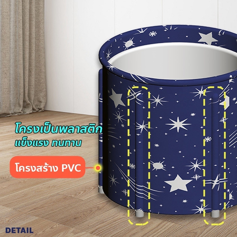 คุณสมบัติ -อ่างแช่น้ำพับได้ สำหรับเด็กและผู้ใหญ่ -ผ้าหุ้มด้านนอกทำจากคอตตอนเพิร์ล ไม่ขึ้นเชื้อรา ไม่อมฝุ่น ปลอดภัยต่อผิวแพ้ง่าย -โครงและผ้าด้านในเป็นพลาสติก PVC แข็งแรง ทนต่อความชื้น เก็บอุณหภูมิความร้อนได้นาน -ใช้เป็นอ่างอาบน้ำ แช่น้ำเพื่อผ่อนคลาย หรือทำสปาส่วนตัว -สามารถเติมน้ำอุ่น -คุ้มค