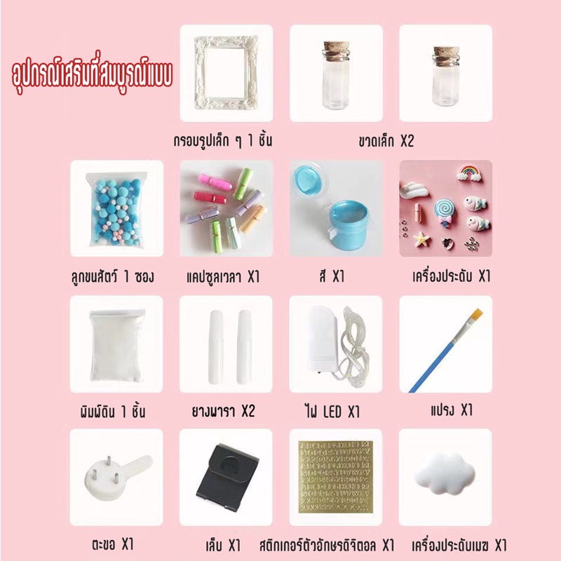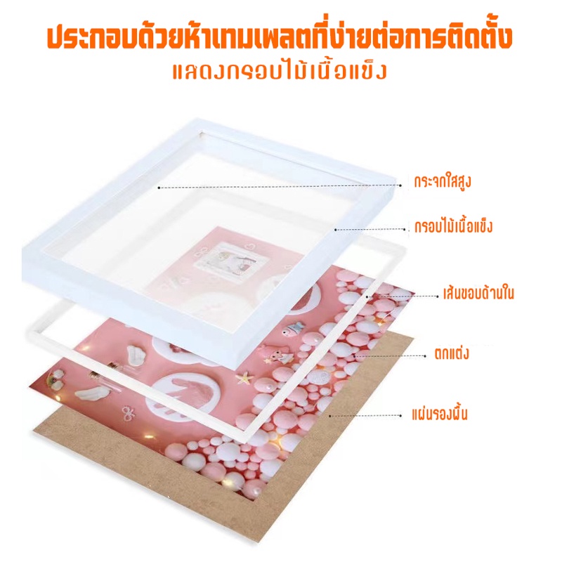 ... การเก็บเงินปลายทางCOD ------------------------------------------------------------------------------------ 👼🏻Hand and Foot Photo Frame 👼🏻 กรอบรูปปั๊มมือเท้า เก็บความประทับใจ ของลูกน้อย ใครกำลังมองหาของขวัญเยี่ยมคลอด อันนี้ถูกใจแม่ๆ แน่นอน ในเซทประกอบด้วย ✅กรอบรูป มีพลาสติใสหนากั้นด้านหน้า ✅กรอบรูปภาพเล็กๆด้านใน ขนาดประมาณ 2 นิ้ว ✅ขวดใส่สายสะดือ ✅ขวดใส่เส้นผม ✅โฟมปั๊มมือเท้า 1 ชุด ไม่ต้องกลัวไม่พอค่า ✅ตัวอักษรภาษาอังกฤษ 1 ชุด ✅หลอดไฟ LED ตกแต่ง ✅และอุปกรณ์ตกแต่งตามภาพ คู่มือการทำ ชุดDIY ปั๊มมือเท้า 1.ล้างมือให้สะอาด จากนั้นแกะโฟมสีขาวออกจากซอง ปั้นคลึงเร็วๆที่มือให้โฟมเซทตัวประมาณ 1-2 นาที 2. นำโฟมสีขาวมาปั้นเป็นวงกลมขนาดพอดีกับมือและเท้าน้อง และมาติดที่กระดาษแข็ง หรือพลาสติกใส จากนั้นใช้มือหรือพลาสติกใสอีกแผ่นกดโฟมให้แบนลง ความหนาประมาณ 1-1.5 cm จากนั้นวางผึ่งลมให้โฟมเซทตัว ประมาณ 5 นาที ตัวโฟมจะแห้งลงและฟูขึ้นนิดหน่อย 3. จากนั้นนำโฟมมาปั๊มมือหรือเท้าน้อง กดทิ้งไว้ประมาณ 3-5 วินาที และดึงขึ้นด้วยความรวดเร็ว (ควรทำตอนน้องหลับ) 4. หากปั๊มแล้วสามารถแก้ไขได้ โดยการนำโฟมปั๊มมาปั้นเป็นทรงกลมอีกครั้ง (คล้ายดินน้ำมัน) ทำได้ก่อนตัวโฟมแห้ง 5. เมื่อปั๊มเสร็จแล้วทิ้งให้เซทตัวและแห้งสนิทประมาณ 1-2 วันหรือใช้ไดร์เป่าผมเป่าให้แห้งได้ ไม่แนะนำให้ตากแดดเนื่องจากอาจมีสิ่งสกปรกมาติดได้ 6. นำสีทองที่มีอยู่ในเซท มาระบายตกแต่งรอยเท้าและรอยมือ 7. นำอุปกรณ์ต่างๆมาติดที่แผ่นกระดาษแข็งสีขาวด้านที่มีลวดลาย ------------------------------------------------------------------------------------ ⭐️⭐️เงื่อนไขการประกันภัย ⭐️⭐️⭐️ ❤️❤️สินค้ารุ่นนี้มีจำนวนจำกัด และตอนนี้เป็นราคาโปรโมชั่น สินค้ารุ่นนี้เป็นที่นิยมและสินค้าขายดีของร้านเราค่ะ สินค้าได้รับผลตอบรับค่อนข้างดีมาก ❤️❤️เพื่อไม่ให้พลาดสินค้าใหม่ หรือโปรโมชั่นลดราคา ฝากกดติดตามร้านค้าด้วยนะคะ ❤️❤️หากคุณพอใจกับผลิตภัณฑ์และบริการของเราโปรดให้คำชมเชยระดับห้าดาวแก่เรา คุณมีข้อเสนอแนะหรือคำถามใด ๆ โปรดอย่าลังเลที่จะถามฉัน! รอคอยที่จะมาในครั้งต่อไป! ------------------------------------------------------------------------------------