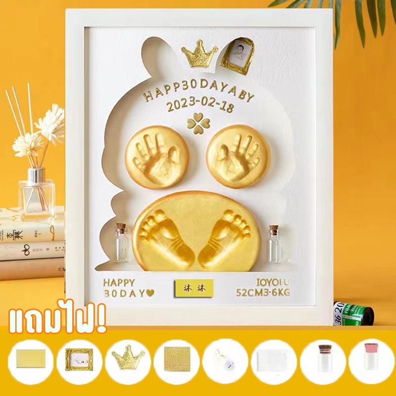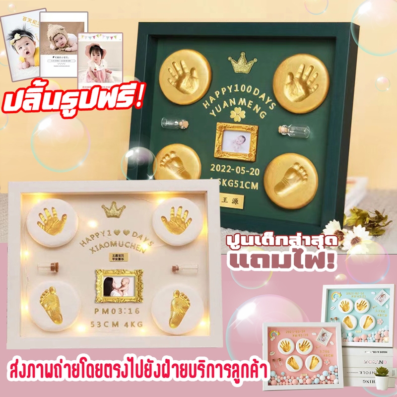 แถมไฟ!DIY ชุดปั๊มมือเท้าเด็ก กรอบไม้เนื้อแข็ง(ของขวัญเด็กแรกเกิด/ปั้มเท้าเด็กแรกเกิด ปั๊มมือ ปั๊มเท้า ที่พิมพ์รอยมือและร