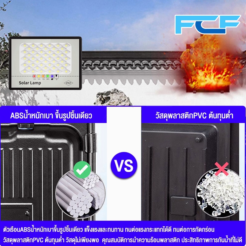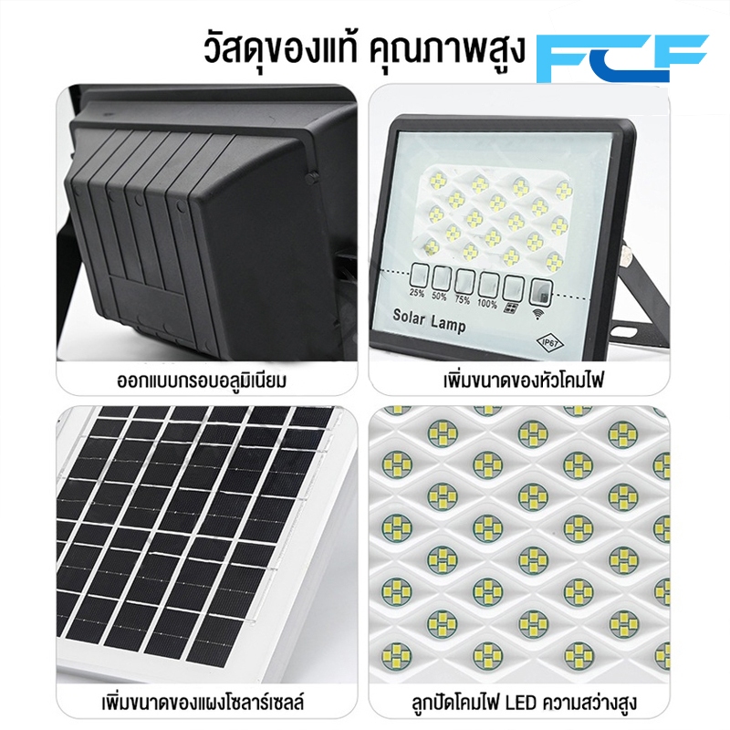 FCF 【1 แถม 1 】โซลาร์เซลล์ 15000W ไฟสปอตไลท์ Solar Light LED กันน้ำกลางแจ้ง ป้องกันฟ้าผ่า จับเวลาระยะไกล แสงสีขาว