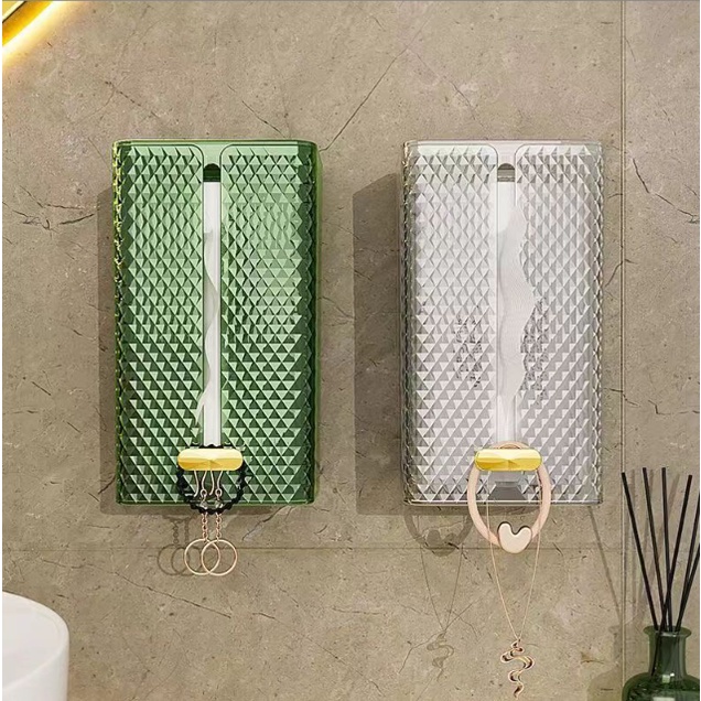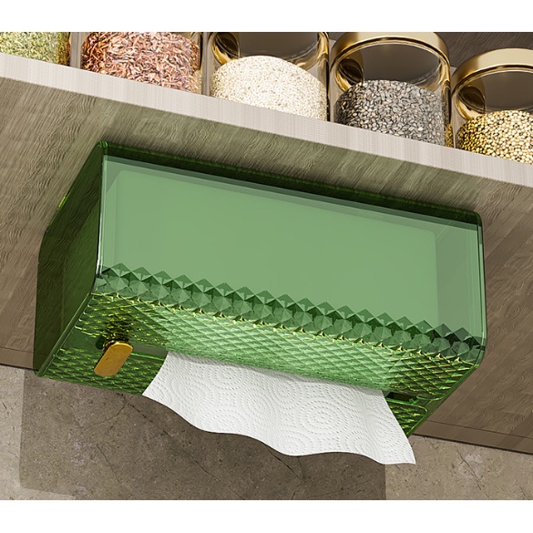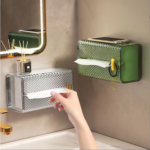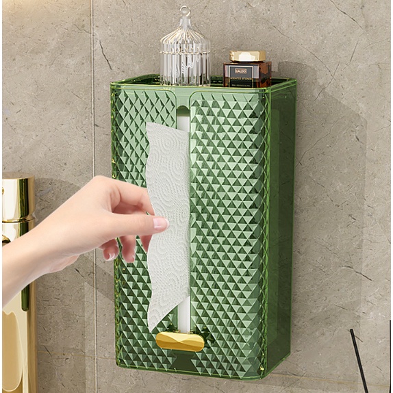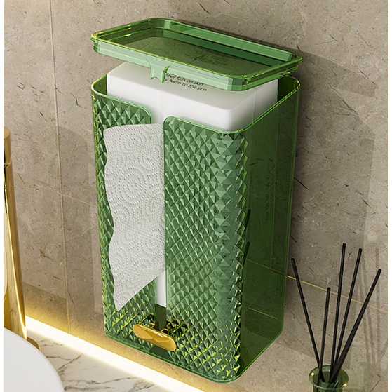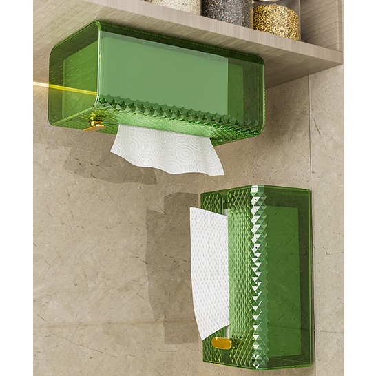 คุณสมบัติของผลิตภัณฑ์: ชื่อ: กล่องทิชชู่แขวนผนังเพชร สี: ขาวใส, เขียวใส, เหลืองใส วัสดุ: ABS ขนาด 13*22*9cm กล่องกระดาษทิชชู่แบบเรียบง่ายใหม่ในบ้านห้องนั่งเล่นเดสก์ท็อปแสงหรูหรากล่องทิชชู่แบบเรียบง่ายไร้รอยต่อเจาะผนังฟรีห้องน้ำแบบติดตั้งกล่องกระดาษ คุณสมบัติของสินค้า: รูปแบบลายสก็อตคริสตัลใ