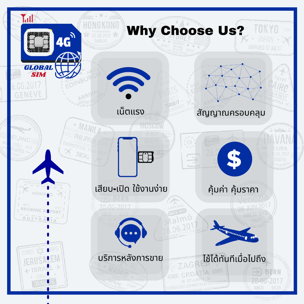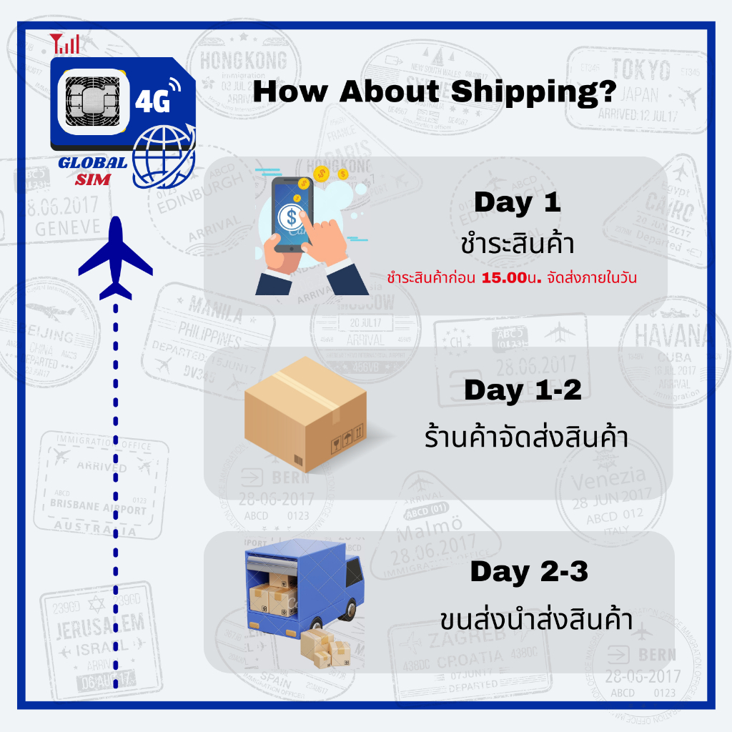 ... ฟังก์ชั่น hotspot และ Pocket WiFi (เครื่องที่สามารถรองรับความถี่เดียวกับเครือข่ายของไทยได้) ● เริ่มนับเมื่อจับสัญญาณนับเป็น Day1 หลังเที่ยงคืน (BKK Time) นับเป็น Day 2 Package ● Package เน็ต 4G Max Speed ตามปริมาณ GB ที่ท่านเลือกต่อวัน หลังจากนั้นจะลดลงเหลือ 128kb/s จนถึงวันถัดไป ● Package เน็ต 5G Max Speed ตามปริมาณ GB ที่ท่านเลือกต่อวัน หลังจากนั้นจะลดลงเหลือ 128kb/s จนถึงวันถัดไป ------------------------------------------------- ※ เปิดใช้งาน 3 Step เมื่อถึงประเทศปลายทาง Step 1 ใส่SIM เข้าโทรศัพท์มือถือ ขึ้น pop-up ให้กดตกลง Step 2 เปิดไอคอน Data Roaming Step 3 ใส่ข้อมูล APN (เฉพาะกรณีที่ยังใช้งานไม่ได้ ดูตามคู่มือที่แนบไปให้) แล้วใช้งานได้เลย -------------------------------------------------- 🔔วัน เวลา การจัดส่ง - ปกติแล้วสินค้าจะถูกส่งถึงท่านภายใน 3-4 วัน - โปรดเผื่อเวลาในการสั่งซื้ออย่างน้อย 5 วัน เพื่อให้มั่นใจว่าสินค้าจะถูกส่งถึงทันก่อนวันเดินทาง - จัดส่งสินค้าทุกวัน ตัดรอบเวลา 15.00 น หลังจากนั้นการสั่งซื้อจะถูกจัดส่งในวันถัดไป - ช่วงเทศกาล, Campaign ต่างๆ อาจจัดส่งล่าช้า 2-3 วัน ขอให้เผื่อเวลา ----------------------------------------