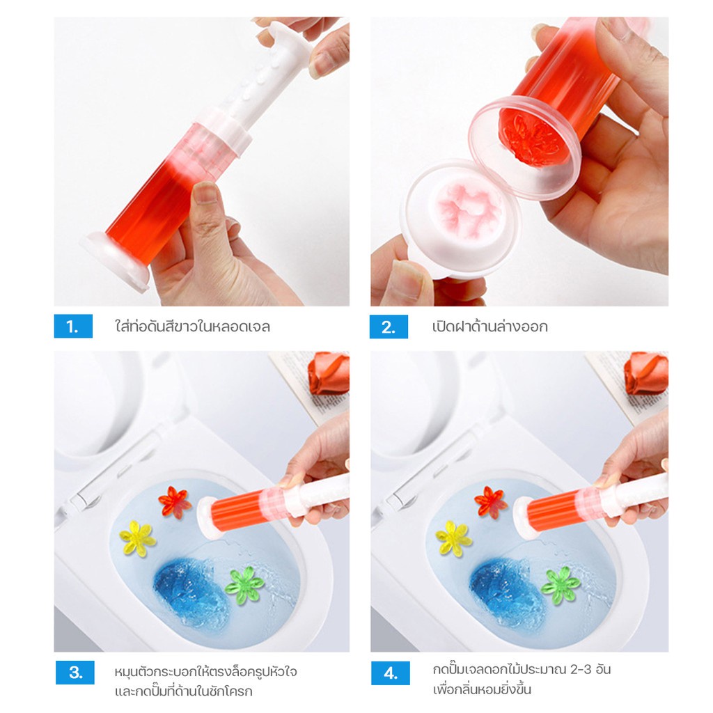 ... งน้ำ ชักโครกได้ 🌸ช่วยชะลอการเกิดคราบที่ติดชักโครก หรืออ่างล้างมือ 🌸หลอดนึงสามารถใช้ได้ถึง 6-8 ครั้ง ติดนานประมาณ 1 สัปดาห์ต่อการกด 1 ครั้ง (ละลายช้าเร็วขึ้นอยู่กับความถี่การใช้งานและความแรงของน้ำนะคะ) 🌸เพียงกดในจุดที่ต้องการของชักโครก 2-4 จุด (สามารถดูในภาพตัวอย่างได้) ตามขีดหลอดได้เลยค่ะ แนะนำค่อยๆกดเแต่น้อยอย่ากดเยอะเกินไป เน้นกดหลายๆจุดจะได้หอมๆค่ะ 🌸กลิ่นจะเริ่มหอมตอนมีน้ำไหลผ่าน