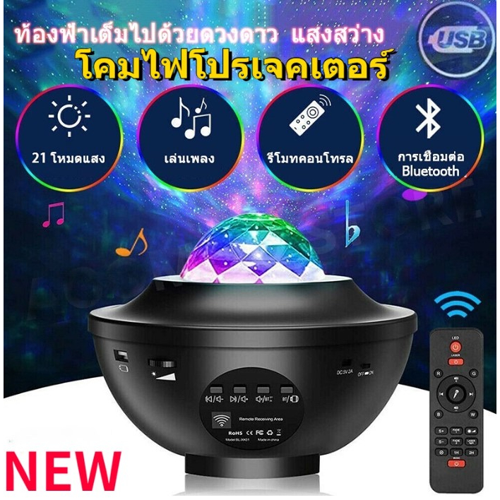 🌟 โคมไฟดาว กาแลคซี่ พร้อมลำโพงบลูทูธ ลำโพงไฟเทค โคมไฟโปรเจคเตอร์ ไฟแต่งห้อง sky Projector