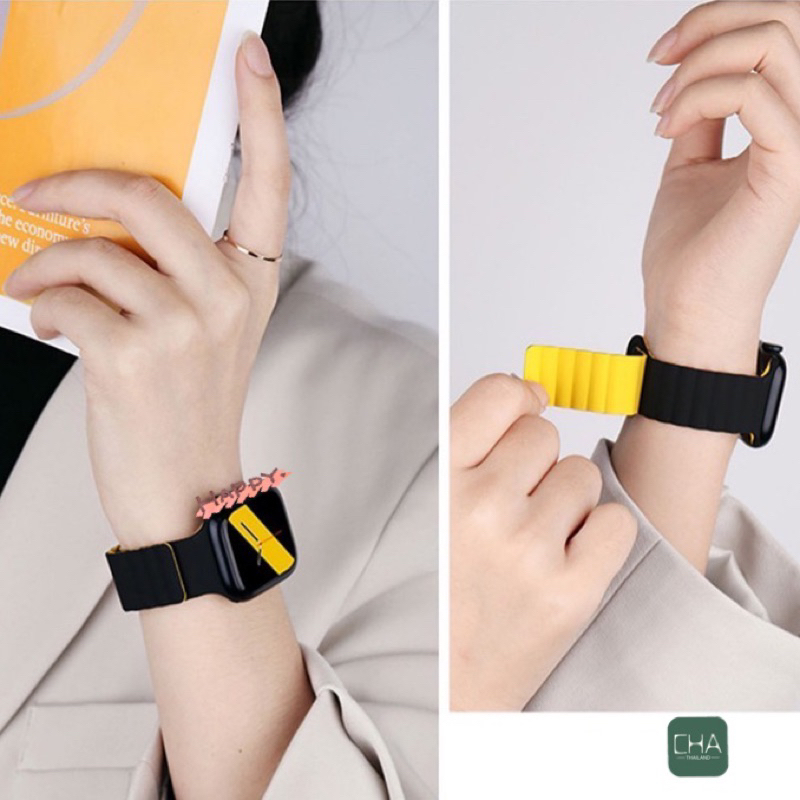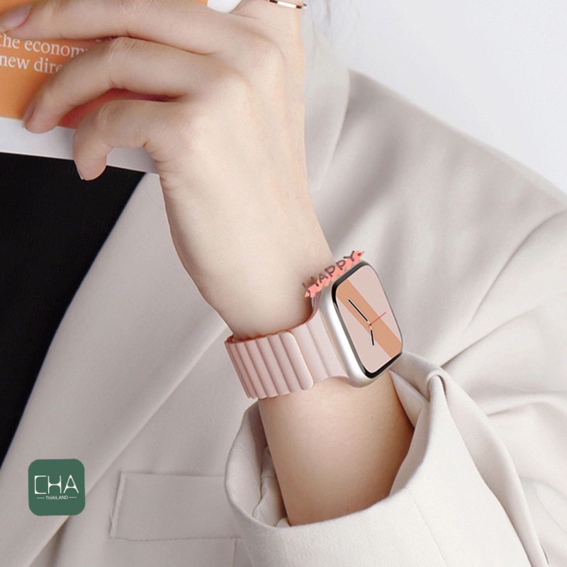สาย smart watch 40/44/45/41/46มม สายนาฬิกา smart watch 10 9 8 ultra 7 6 5 4 3 นิ่ม เเบบเเม่เหล็ก a01