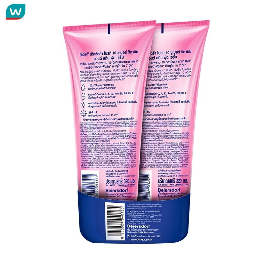 Nivea นีเวีย เอ็กซ์ตร้า ไบรท์ 10 ซูเปอร์ วิตามิน แอนด์ สกิน ฟู้ด เซรั่ม 320 มล.แพ็คคู่