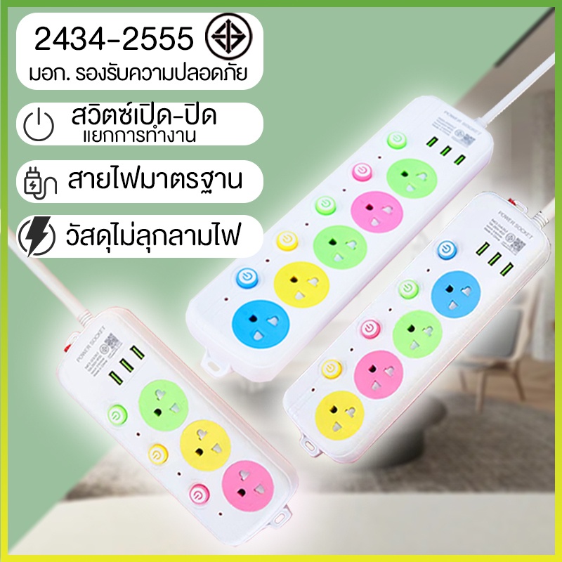 Panasi ปลั๊กไฟ ปลั๊ก 3ช่อง 4ช่อง มีUSB 2300W มีมอก. ปลั๊กพ่วง มาตรฐาน 10A power socket พร้อมสวิตช์ปิด-เปิด