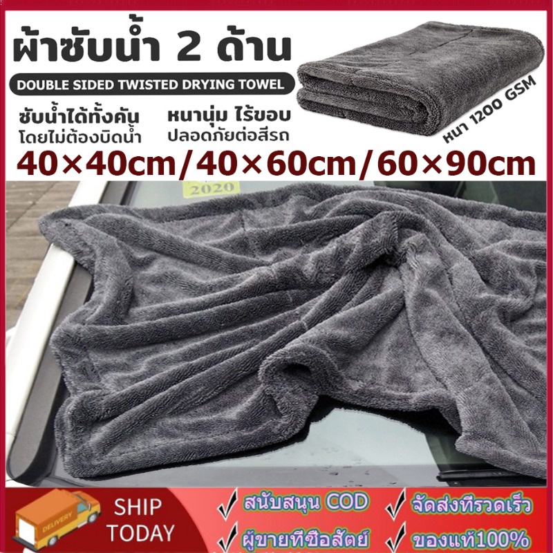ผ้าซับน้ำ Double Sided Twisted Drying Towel 1200 GSM ซับน้ำได้ทั้งคัน โดยไม่ต้องบิดน้ำ หนานุ่ม ไร้ขอบ ปลอดภัยต่อสีรถ