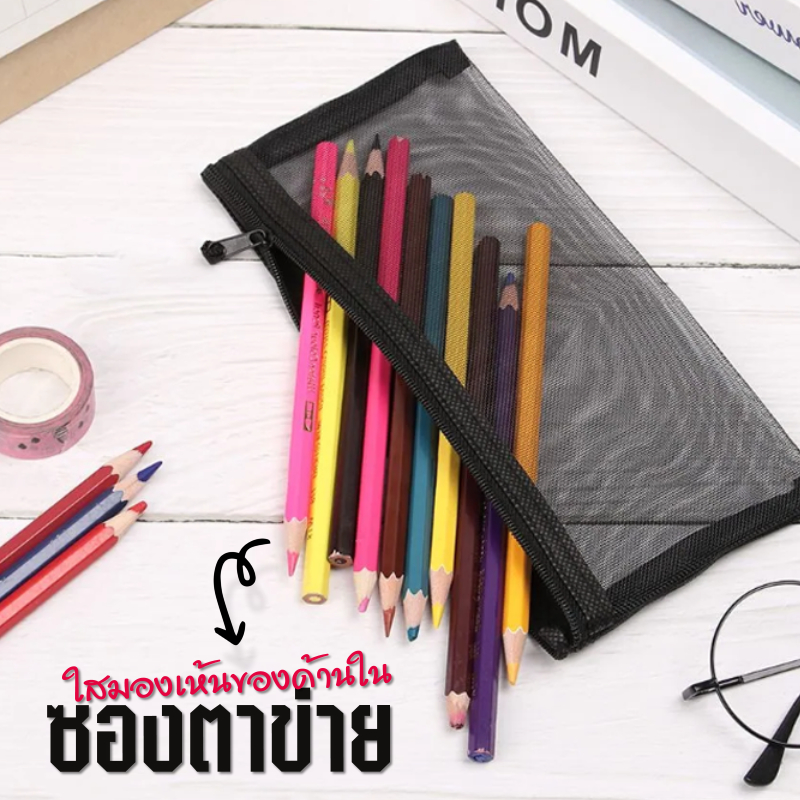 กระเป๋าใส่ของ จุได้เยอะ ถุงตาข่ายใส่ปากกาดินสอมีซิป