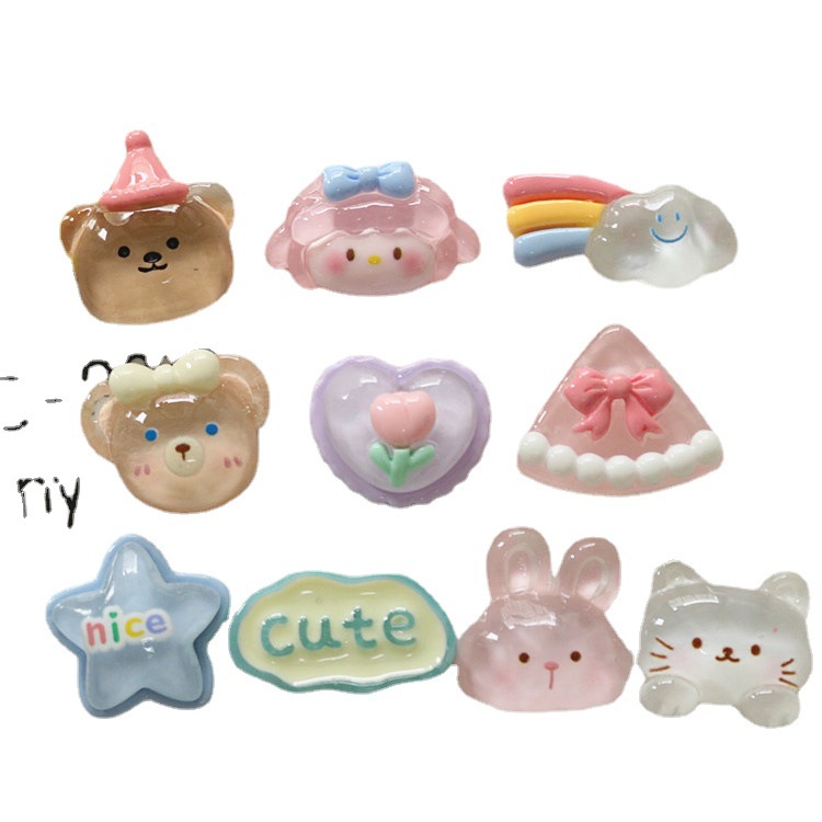 สถานที่กำเนิด: Yiwu ประเภท: อุปกรณ์เครื่องประดับ DIY กระบวนการบำบัด: อีพ็อกซี่ หมายเลขสินค้า: C10-3 วัสดุ: พลาสติก/เรซิน สี: โปร่งใส-เค้กสามเหลี่ยม, โปร่งใส-หัวกระต่ายสีชมพู, โปร่งใส-หมีโบว์สีเบจ, โปร่งใส-มีฮู้ด, โปร่งใส-ดาวที่ดี, โปร่งใส-ดอกทิวลิปสีม่วง, โปร่งใส-Cute, แมวสีขาวใส, เมฆสีรุ้งโปร่