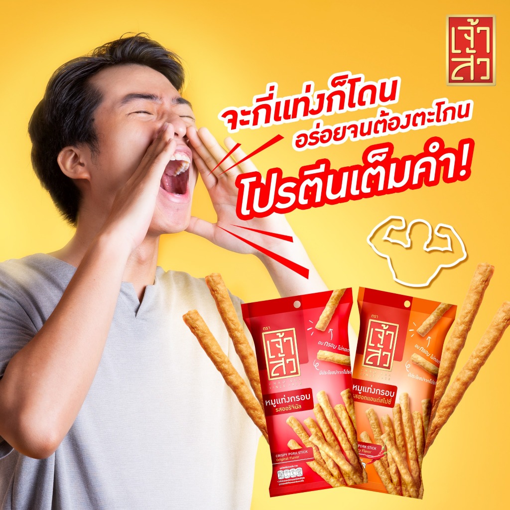 เจ้าสัว หมูแท่งกรอบ รสออริจินัล 110 กรัม ส่วนประกอบโดยประมาณ : - เนื้อหมู 60% - เนื้อไก่ 20% - น้ำตาลทราย 16% - น้ำปลา 2% - ซีอิ้วขาว 2% ได้รับการรับรองระบบ GMP สากล สำหรับการผลิตผลิตภัณฑ์จากเนื้อสัตว์ ข้อมูลสำหรับคนแพ้อาหาร : มีปลา , ถั่วเหลือง , แป้งสาลีจากซีอิ้วขาว วิธีการเก็บรักษ