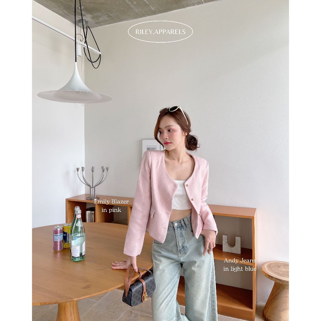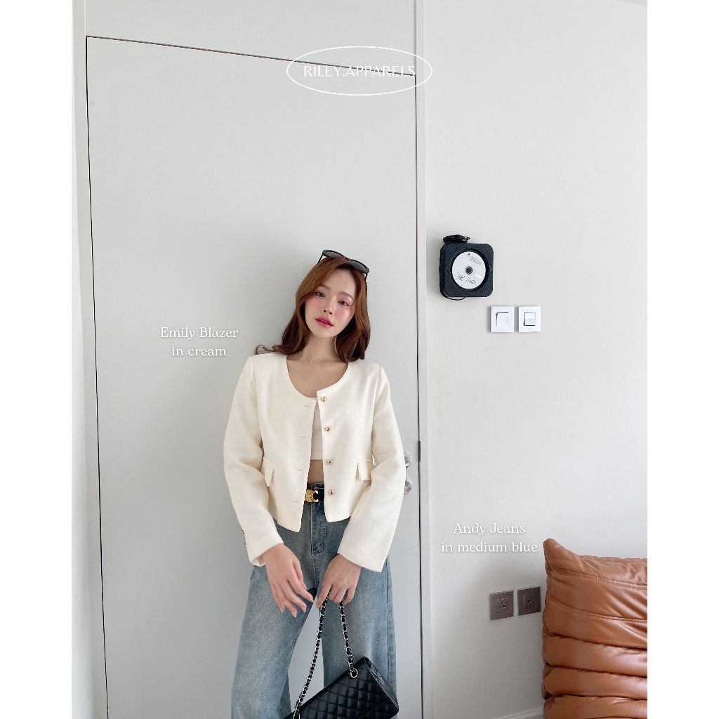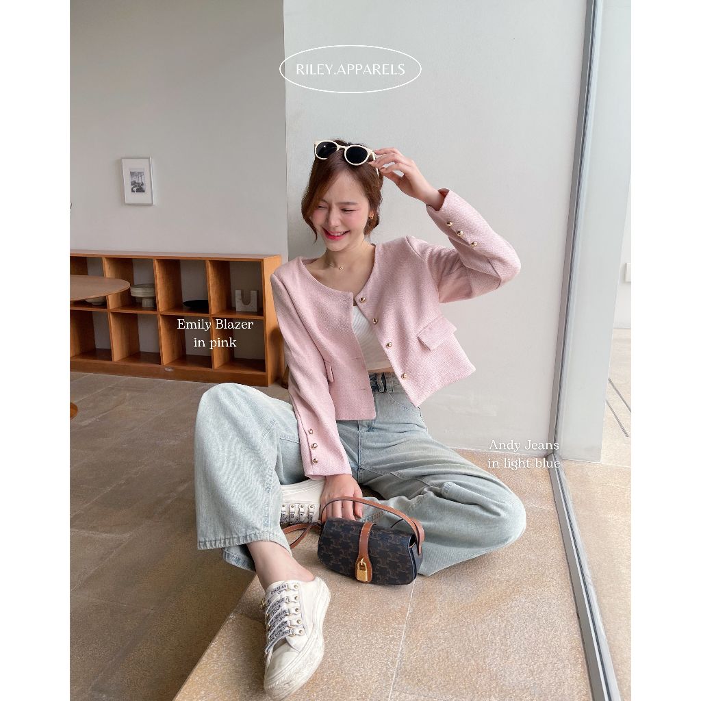 💫นี่คือเบลเซอร์ทวิตที่จริงใจจ! 𝑬𝒎𝒊𝒍𝒚 𝑩𝒍𝒂𝒛𝒆𝒓✨ รุ่นนี้ทรงสวยมาก ดีเทลลายผ้าน่ารักมากกกก เป็นเบลเซอร์ทรงคอกลมที่ไม่ติดคอ ใส่แล้วคอไม่ตันแน่นอน ออกแบบปรับทรงมาดีมากๆ ผ้าทวิตรุ่นนี้จะไม่หนามากเกินไป ใส่คลุมในประเทศไทยได้ หรือจะใส่คลุมไปต่างประเทศอากาศเย็นๆก็ได้ค่า มีใส่ซับในอัดกาวให้ทั้งตัว ผ้าทวิตเกรดอ