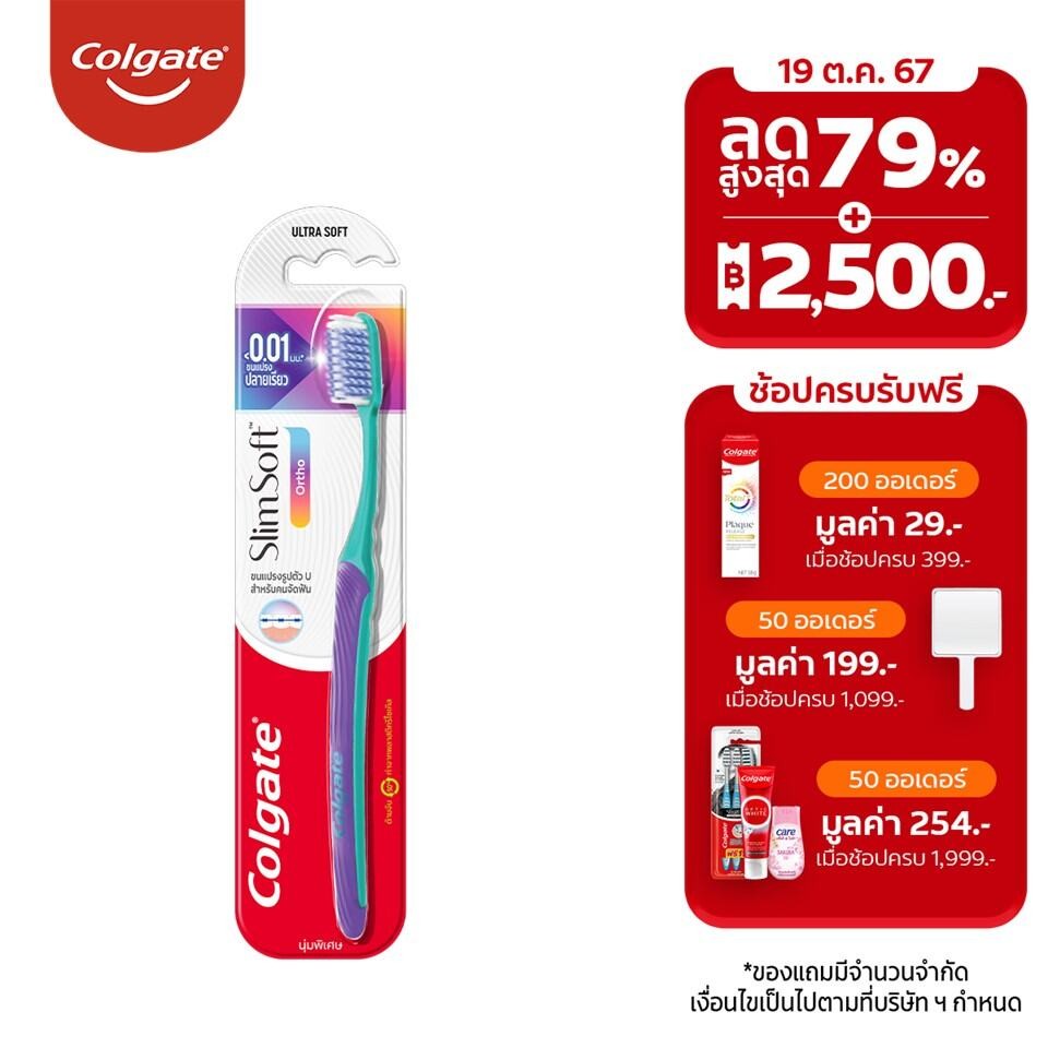 คอลเกต แปรงสีฟัน สลิมซอฟท์ ออร์โธ (สำหรับคนจัดฟัน) - แปรงจัดฟัน ขนแปรงรูปตัวยู - ขนแปรงปลายเรียว รูปตัว U โค้งรับกับรูปทรงของเครื่องมือจัดฟันได้ดี เพื่อการทำความสะอาดเหงือกและฟัน มอบความรู้สึกดีขณะแปรงฟัน - ขนแปรงบิดเกลียวปลายเรียว ยืดหยุ่น เพื่อการทำความสะอาดลึกอย่างมีประสิทธิภาพ พร้อมการดูแลเห