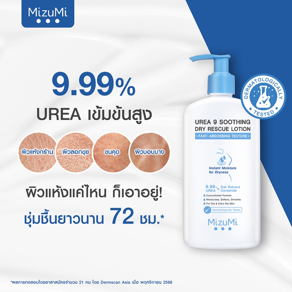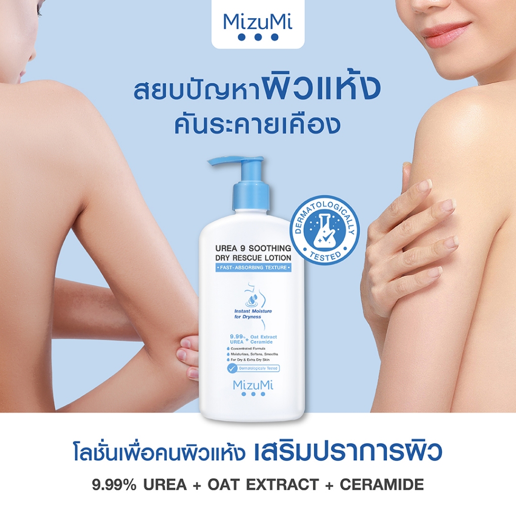 MizuMi Urea 9 Soothing Dry Rescue Lotion 250 ml ✔️ฟื้นบำรุงผิวแห้งถึงแห้งมาก ให้ชุ่มชื้นยาวนาน ✔️ฟื้นบำรุงผิวให้รู้สึกเนียนนุ่ม พร้อมเสริมปราการผิวให้แข็งแรง 🩵9.99% Urea เข้มข้นสูง เป็น Natural Moisturizing Factor (NMF) -กักเก็บและเพิ่มความชุ่มชื้นผิวตามธรรมชาติ -ลดความ